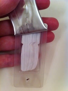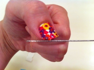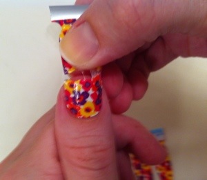 Here is what you will have left. Gently tear away the gray part of the strip, and use the other end on the same nail on your other hand!