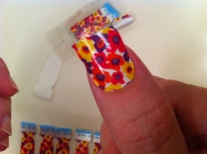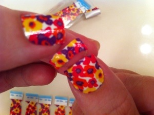 The only thing I don’t like about these strips are that once you open the foil packet, you have to use those strips or they will dry out. The 3 strips that you didn’t use just go to waste. I have tried saving them in a ziploc, but they always dry out. Too bad you can’t just save one for an accent nail or something. It’s great how you can get two manicures out of these boxes, though!