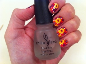 Repeat this process on all of your other nails, and finish off with a topcoat. My favorite is China Glaze No Chip Topcoat.