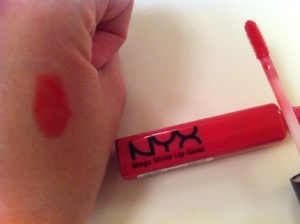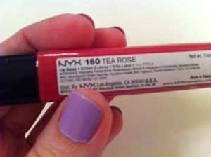 To top it off, I am using my favorite lipgloss, NYX Megashine in the color Tea Rose. This lipgloss is not sticky at all and it smells like cherries. It is very pigmented, so a little bit goes a long way.