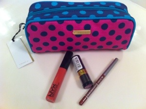 To thank everyone for reading, I am going to be giving away a little polka dot cosmetic case filled with these 3 goodies (brand new of course!) I think these colors are very neutral, and will suit everyone’s skin tone.