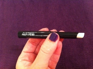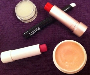 If I am wearing lipstick, as opposed to a tinted lip balm, I like to apply some of this MAC Prep+Prime for lips. This is not a lip balm, it is a primer for lipstick. You apply it to your lips, and wait about 5 minutes before applying your lipstick. This adheres to your lipstick and helps with the staying power.