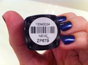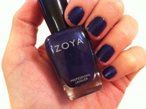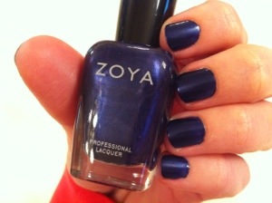 I received this polish in my Ipsy bag, and I love it so far! This color is a gorgeous royal blue color with some purple and blue shimmer. This is from the new Zoya Fall collection for 2013.