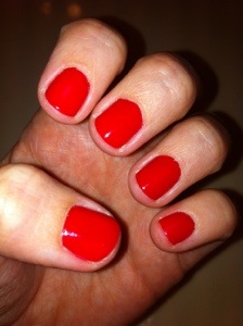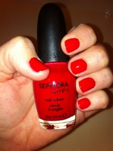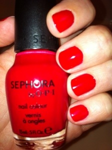 Hello! Today’s mani is a bright red color! Red is always a classic look for nails, and looks good on anyone. This color is Sephora by OPI in Pushing Your Luck.