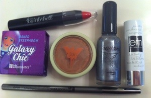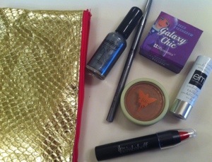 This month’s theme is “Glam It Up” and came with SIX products instead of the usual 5. They came in this cute gold bag with hot pink fabric on the inside, and this bag can also double as a wristlet.