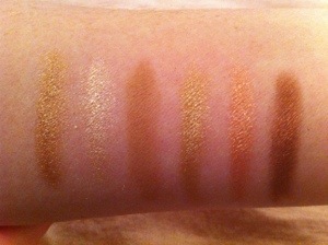 1. This first color is a dark, shimmery, bronze color and is one of my most used colors for smudging under the lashline.