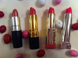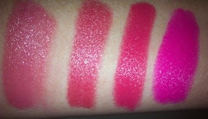 MAC Angel, Revlon Temptress, Milani Fruit Punch, Maybelline Fuchsia Flash