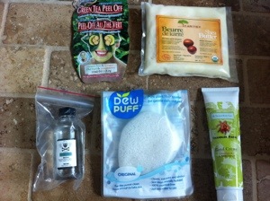 Dew Puff – When I first opened the box, I saw this and immediately opened it to see what it was. It is a plant fiber sponge that you can use to cleanse and exfoliate your skin. It is very hard and lightweight until you add water, and then it changes to a sponge! It is very cool and feels really nice to cleanse your face with!