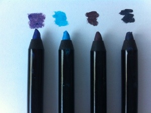 When I use one of the bright ones, like Eccentric Diva or Summer Cruise, I just like to use it on the bottom waterline or smudged into my lower lash line. When using the deeper colors, like Love Affair or Sailor Suit, I line all around my eyes with them. Even though they are dark, they do look noticeably different on the eyes without looking too bright.