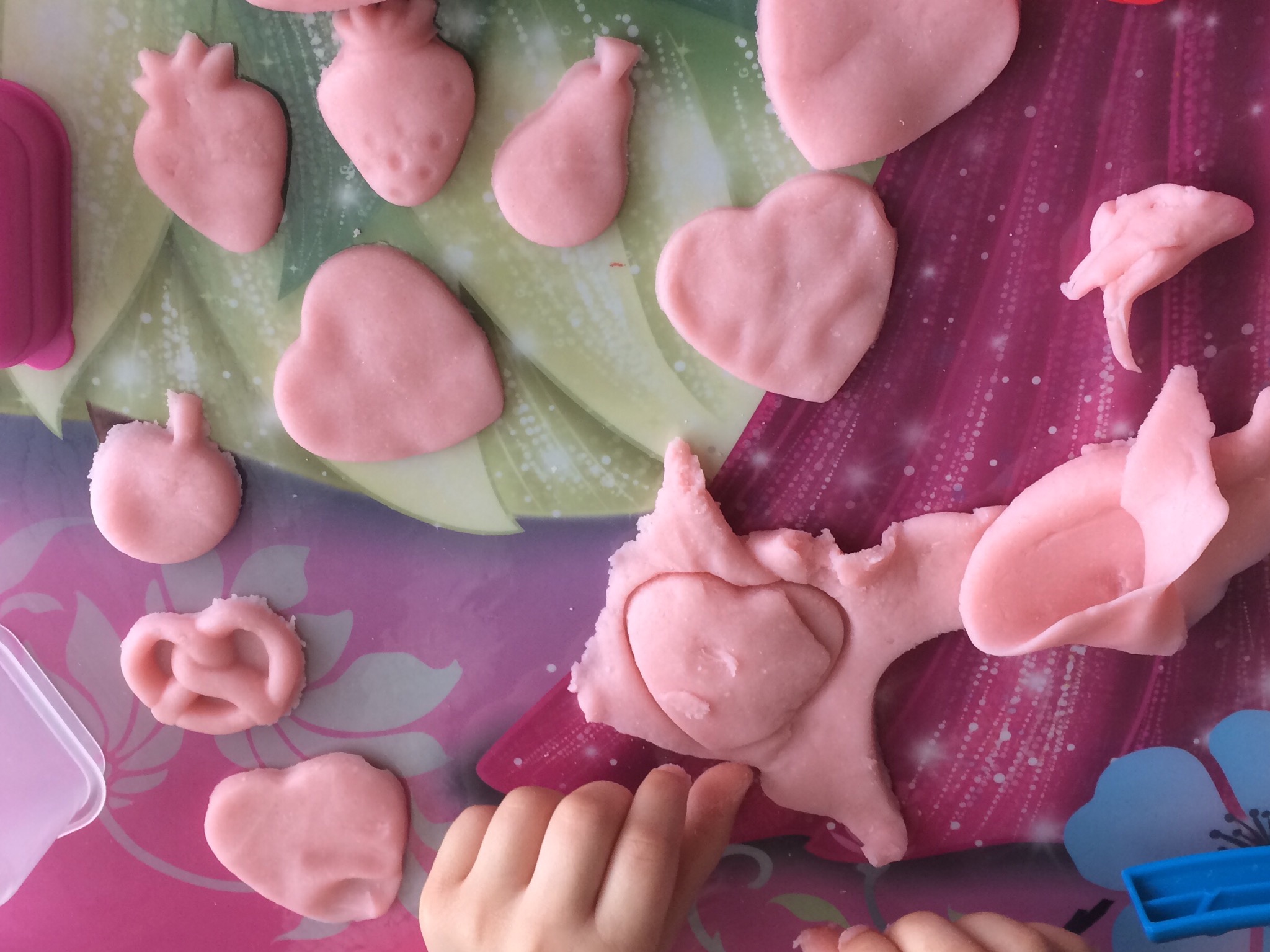My daughter loves to play with play dough, but I cannot stand that disgusting Play-Doh smell! I recently came across a recipe, tweaked it a little bit to my liking, and out came the perfect play-dough! It is super simple to make – I already had everything I needed in my pantry. The best part is, you can make it whatever color you want (we made pink, of course) and it doesn’t have that horrible smell! Also, I feel like this play dough is softer and easier to work with.