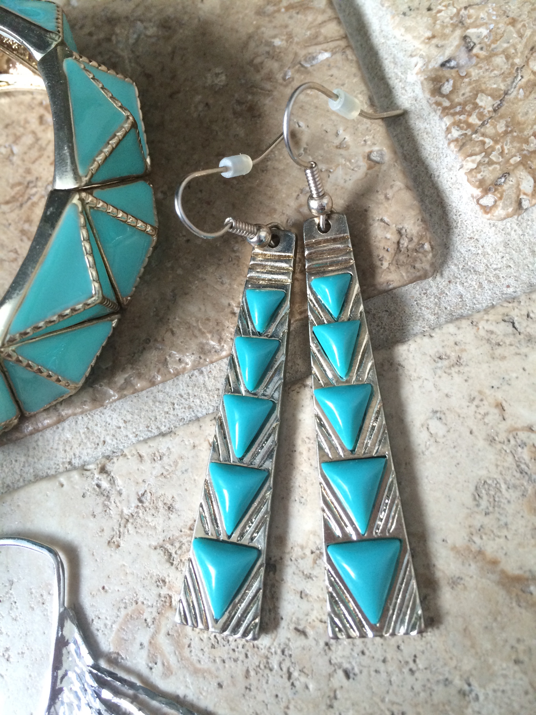 IMG_3343 the blue triangles and geometric shape of these earrings will give any outfit a cool edge.