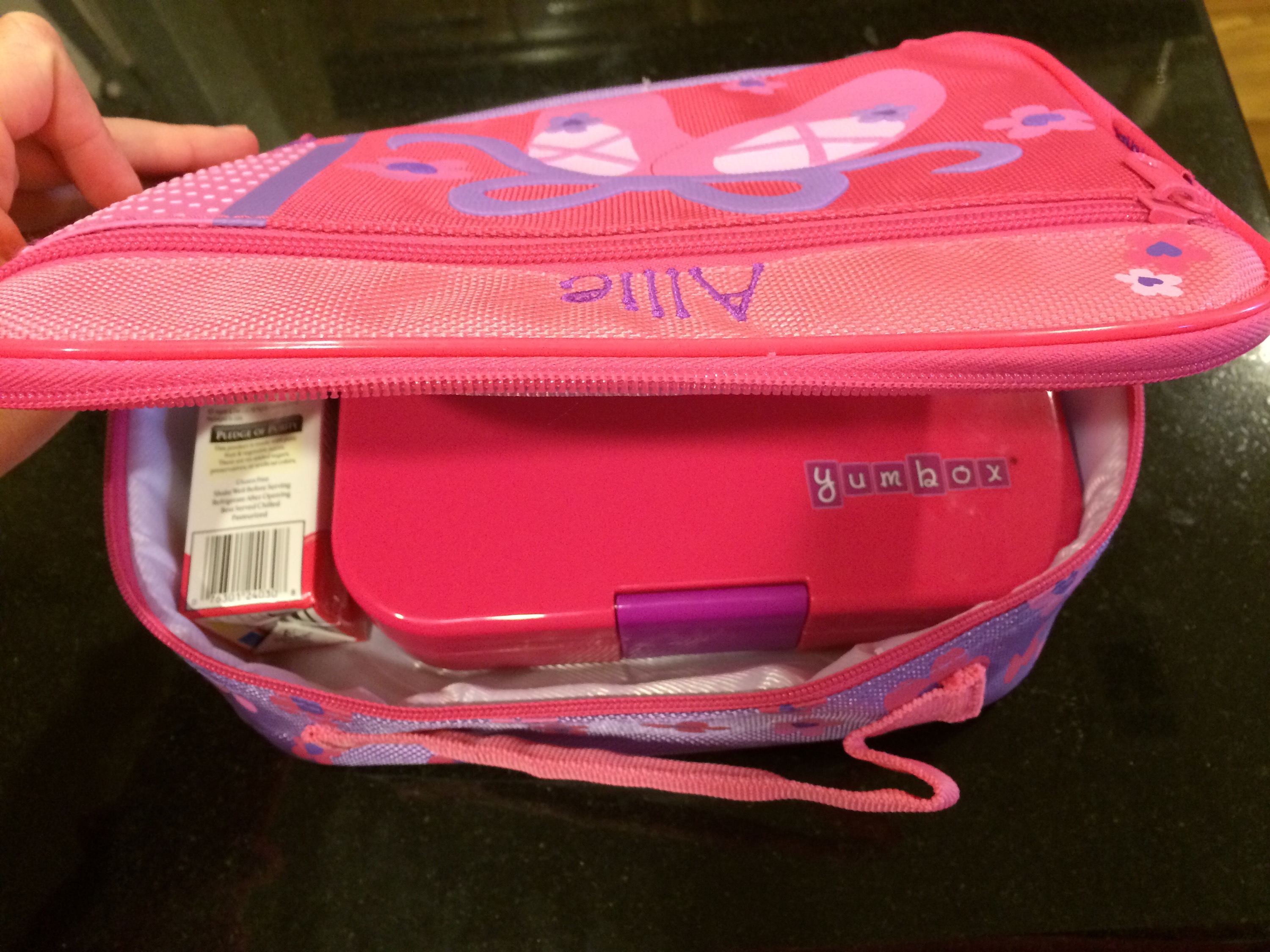 The Yumbox is meant to go inside of a lunchbox along with a drink and an ice pack.