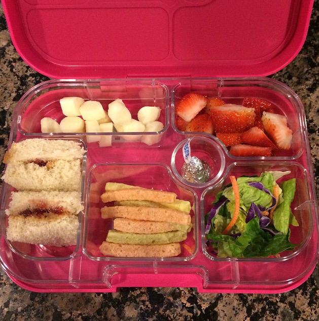 So, the reason why I love this is because it has six different divided sections. I have searched to find another brand with this many sections, and I haven’t found one with more than four. Here are some examples of the lunches I have made for my oldest daughter Allison.