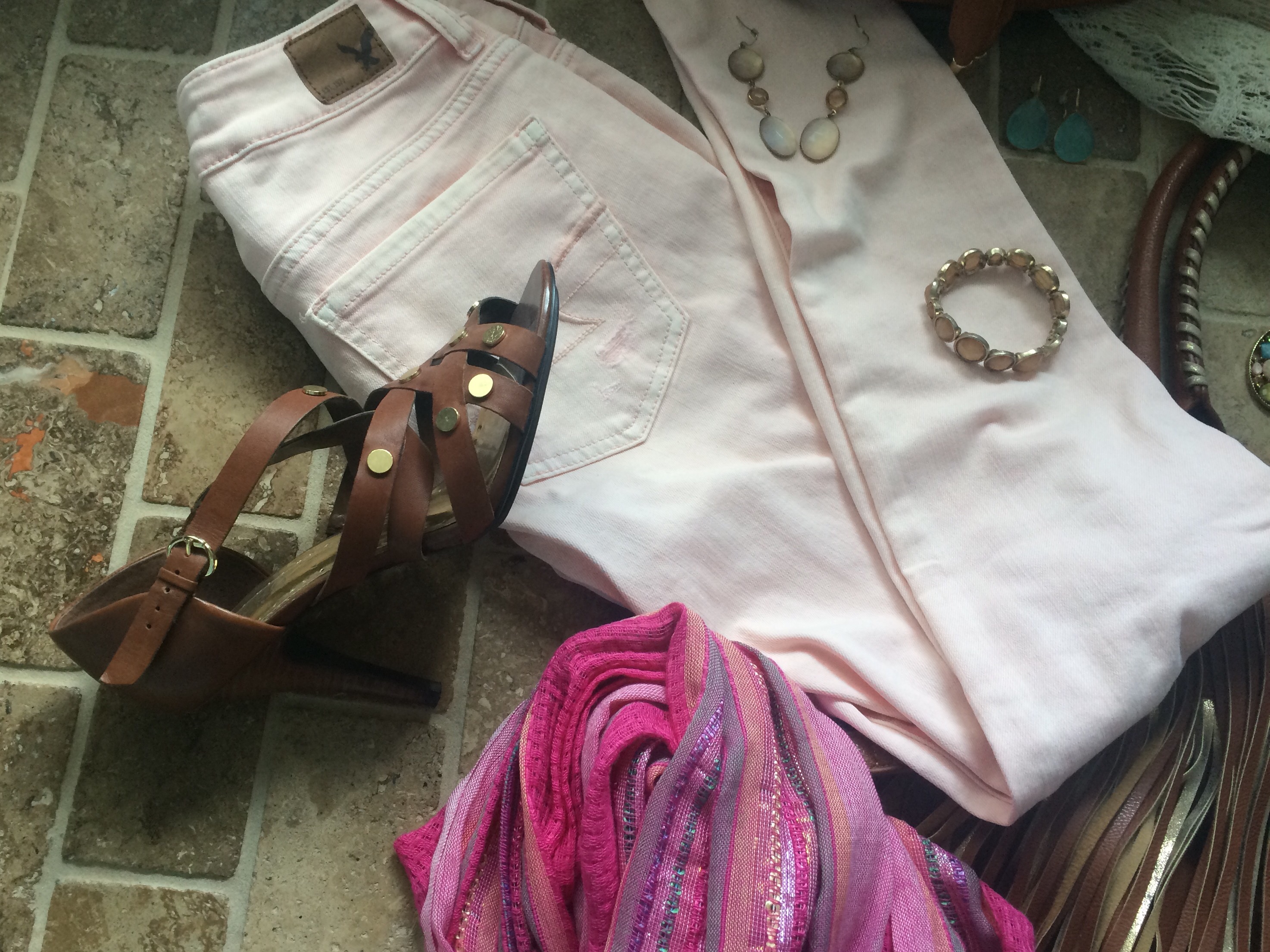 I LOVE colored jeans. White jeans are my favorite, but these distressed, pastel pink jeans are everything. They have just the right amount of “rips” to where they don’t look completely destroyed (I am very particular about the amount of “rippage” in my jeans). These jeans, a white tank, some wedges and some gold jewelry…basically my uniform for spring!