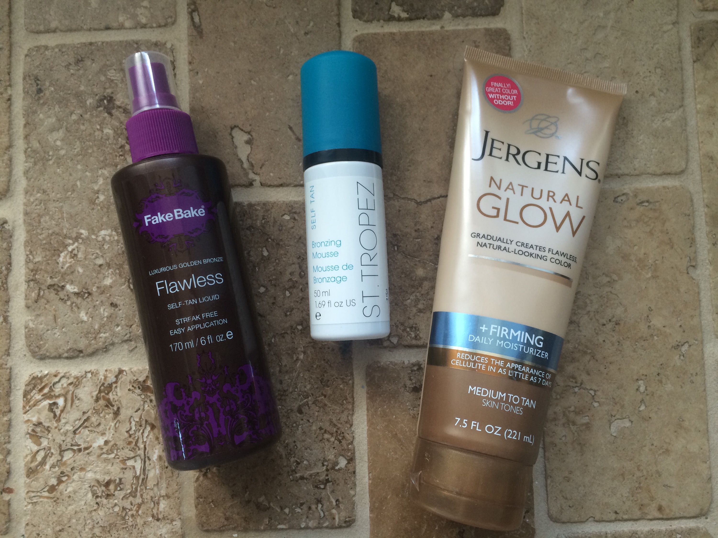 Everyone knows that laying out in the sun is bad, and nowadays you don’t have to with all of these self-tanning options. I’ve got three kinds here, a spray, a mousse, and a gradual tan lotion. All of these are really good, and not orange!