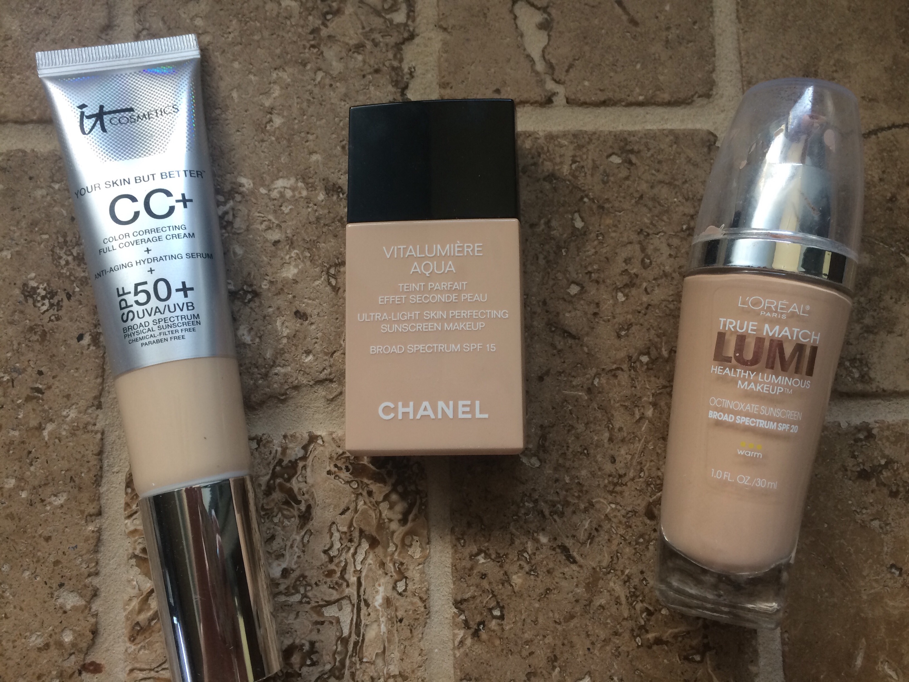 I don’t know about you, but living in Texas in 100+ degree weather, the last thing I want on my face is a thick, full coverage, heavy foundation. These three foundations are super lightweight, last all day, and contain SPF.