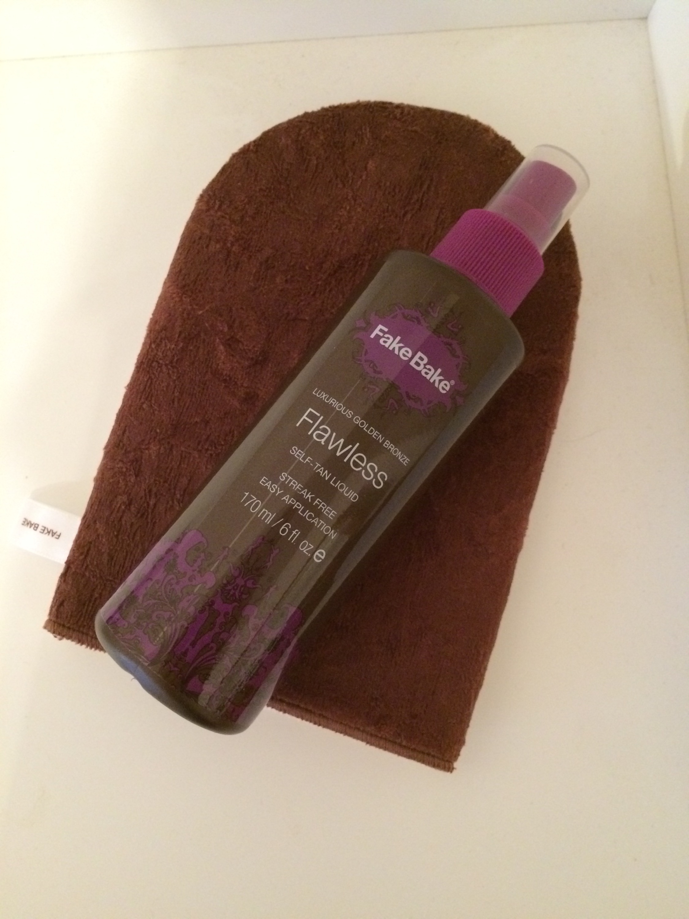 I’m not about to lay out in the sun, so self-tanner is what I like to use. I have tried a bunch of self-tanning products- from mousse, to lotion, and this – a spray liquid called Fake Bake Flawless.