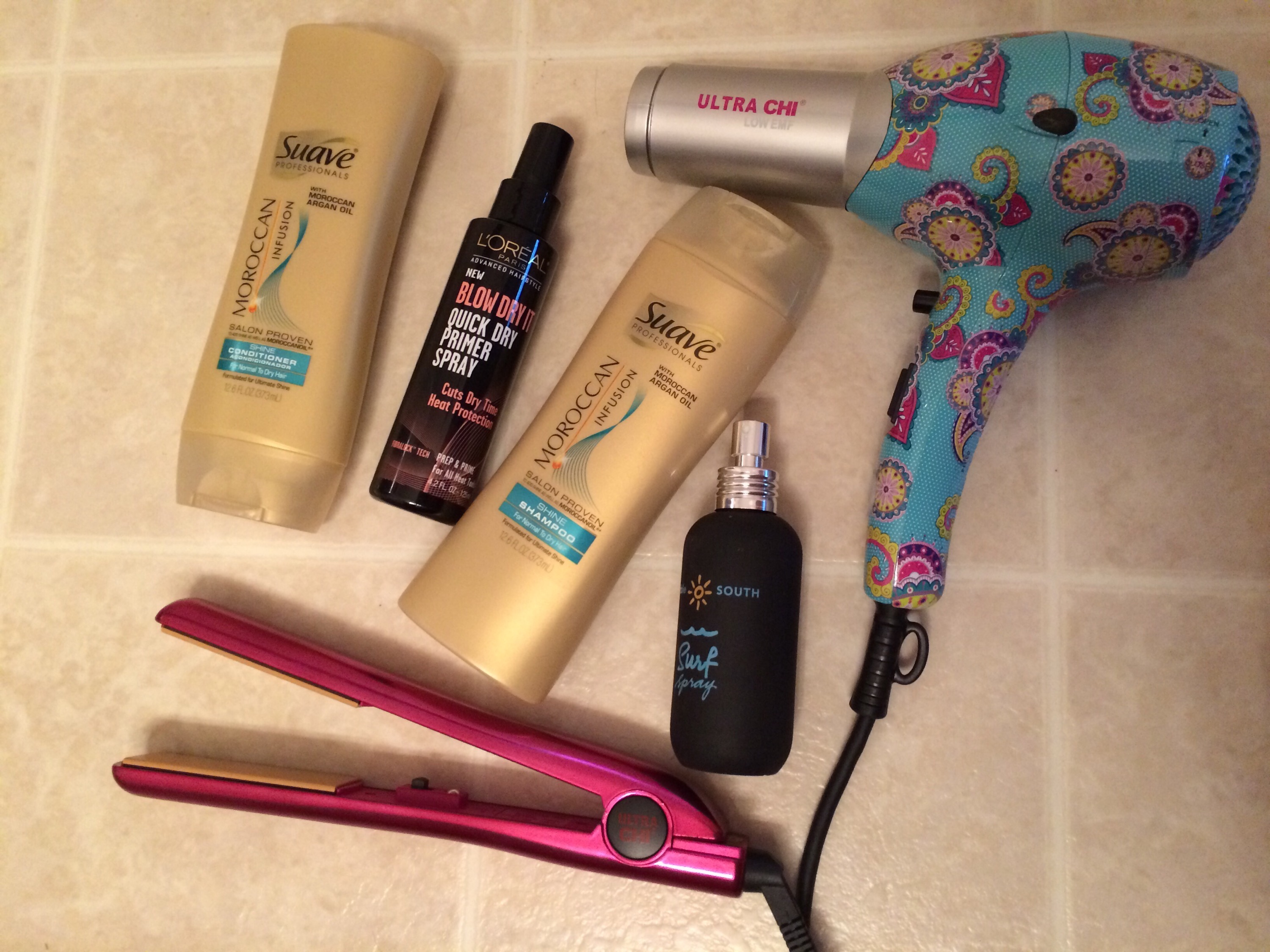 So first off, I shampoo and condition my hair with this Suave Moroccan Infusion shampoo and conditioner. Not only does this line leave your hair suuuper soft, but it smells AMAZING.