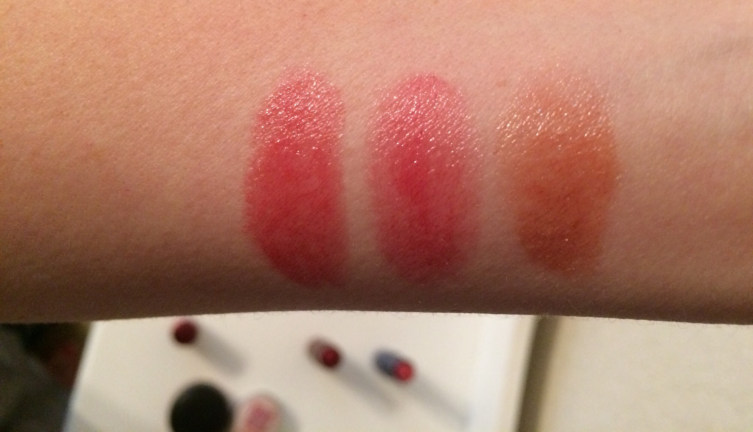 These lipsticks are super moisturizing, and all give a glossy finish.  The application is so smooth and the texture of these are like buttah.  They are very similar to MAC lustre lipsticks which is probably why I love them so much!