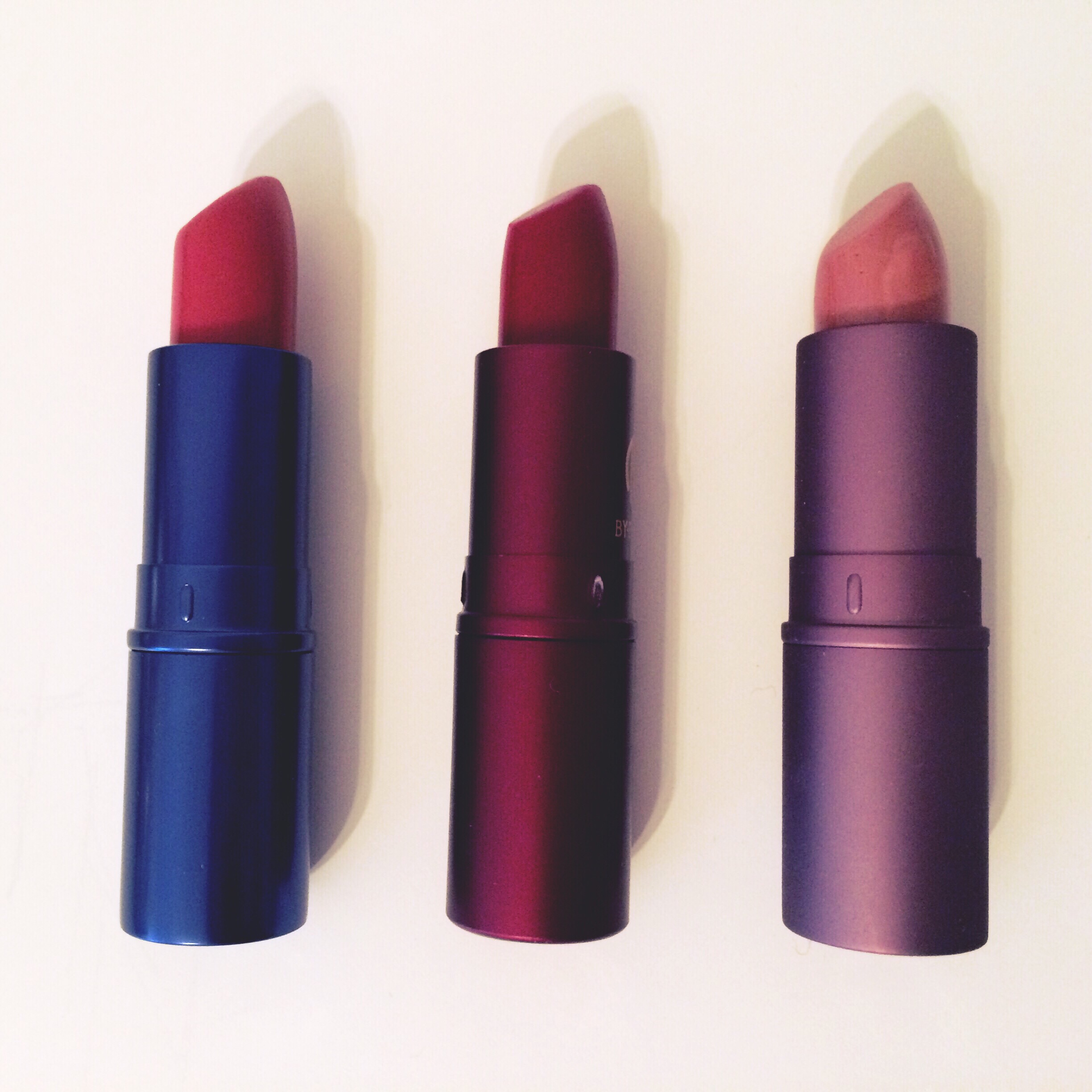 These lipsticks have such pretty metal packaging and cool names.  I have three shades.