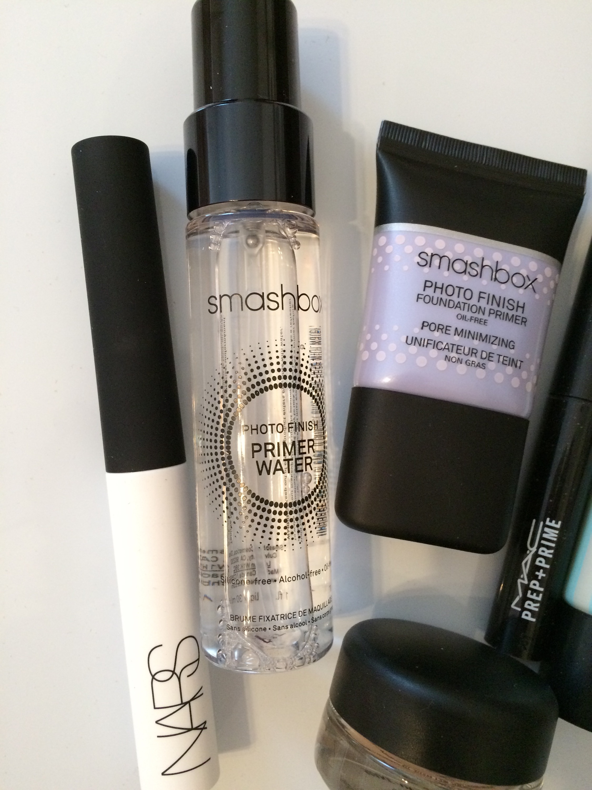 For face, I love anything marketed as “pore minimizing”. My two favorites are Benefit the Porefessional and Smashbox Photo Finish Primer in Pore Minimizing. These two are pretty much the same, they are a skintone tan color and they have a balmy-silicone feel that provides a nice smooth silky base for your foundation to grab onto. I find my makeup wears SO much longer when I use a primer. I also like this Smashbox Photo Finish Primer Water. This is a spray primer that you spritz on before applying your foundation (after your moisturizer) and it primes your face for makeup. Give me all these types of sprays. I love anything that you can spray on your face before or after makeup. Keep it in the fridge for a cool mist. ahhhhhh.