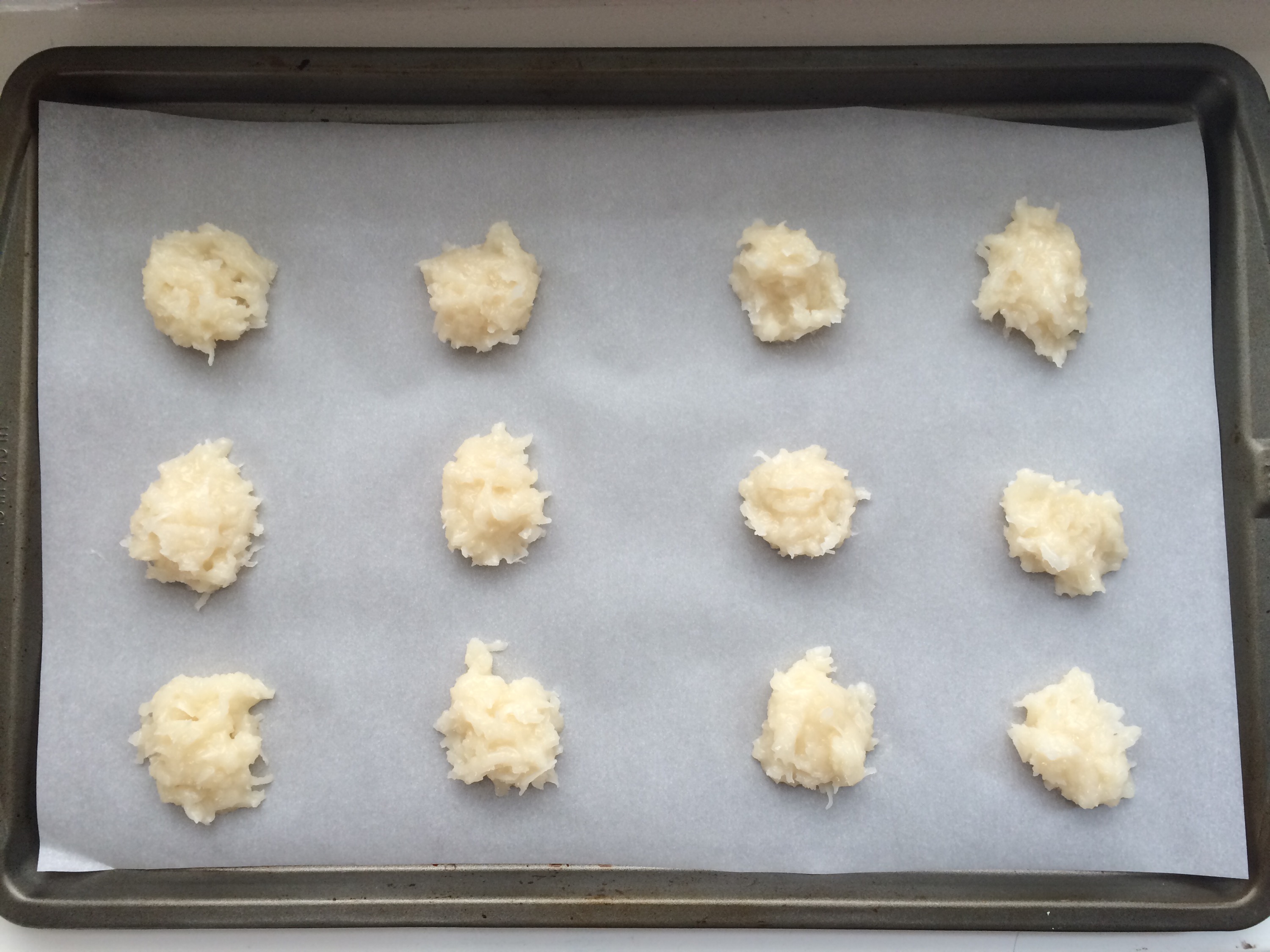 Spoon onto cookie sheet lined with parchment paper (SO MUCH EASIER) and bake for about 15 minutes or until browned.