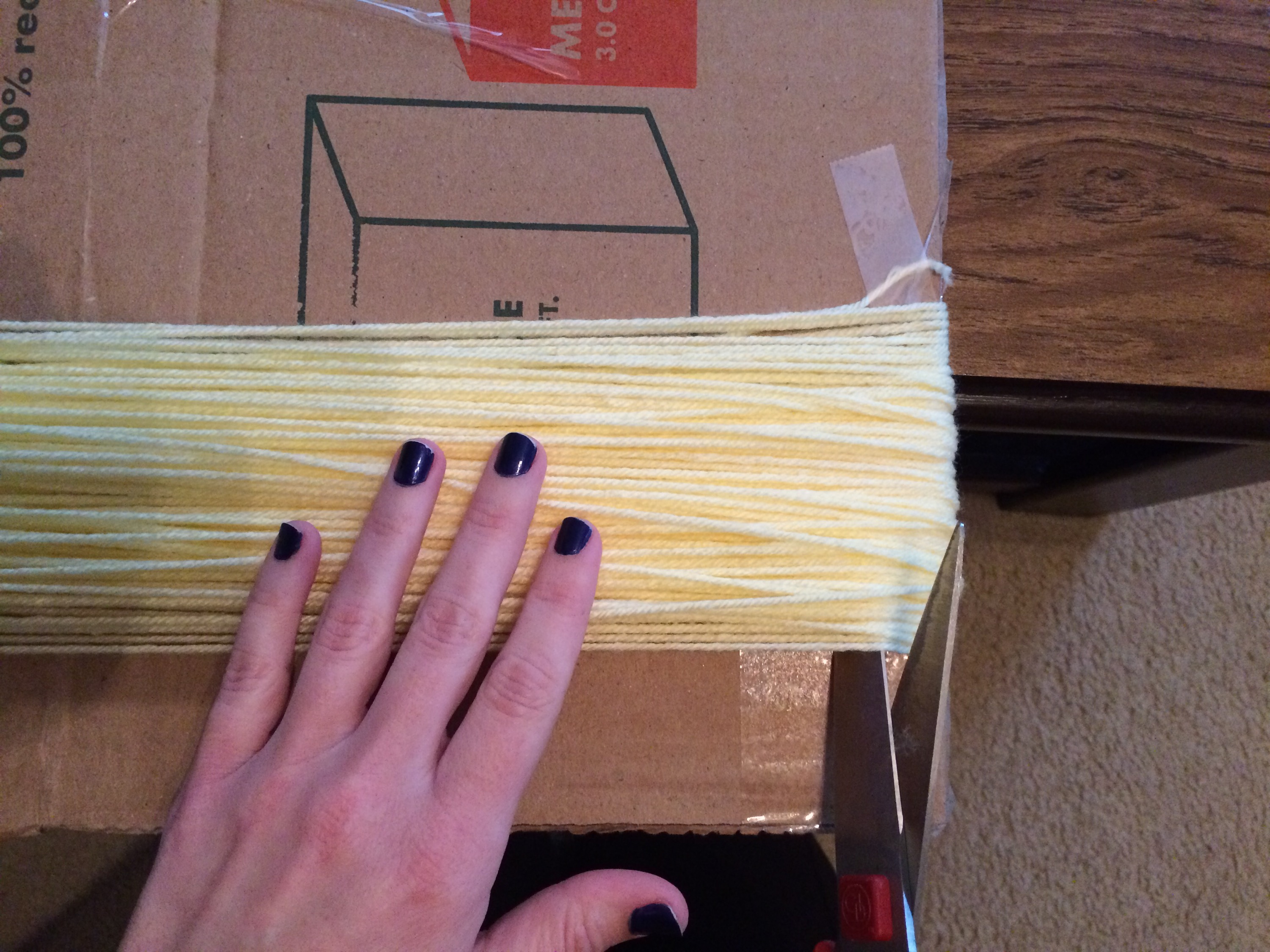 Take your scissors and cut the top of the yarn, making one long strand of yarn.