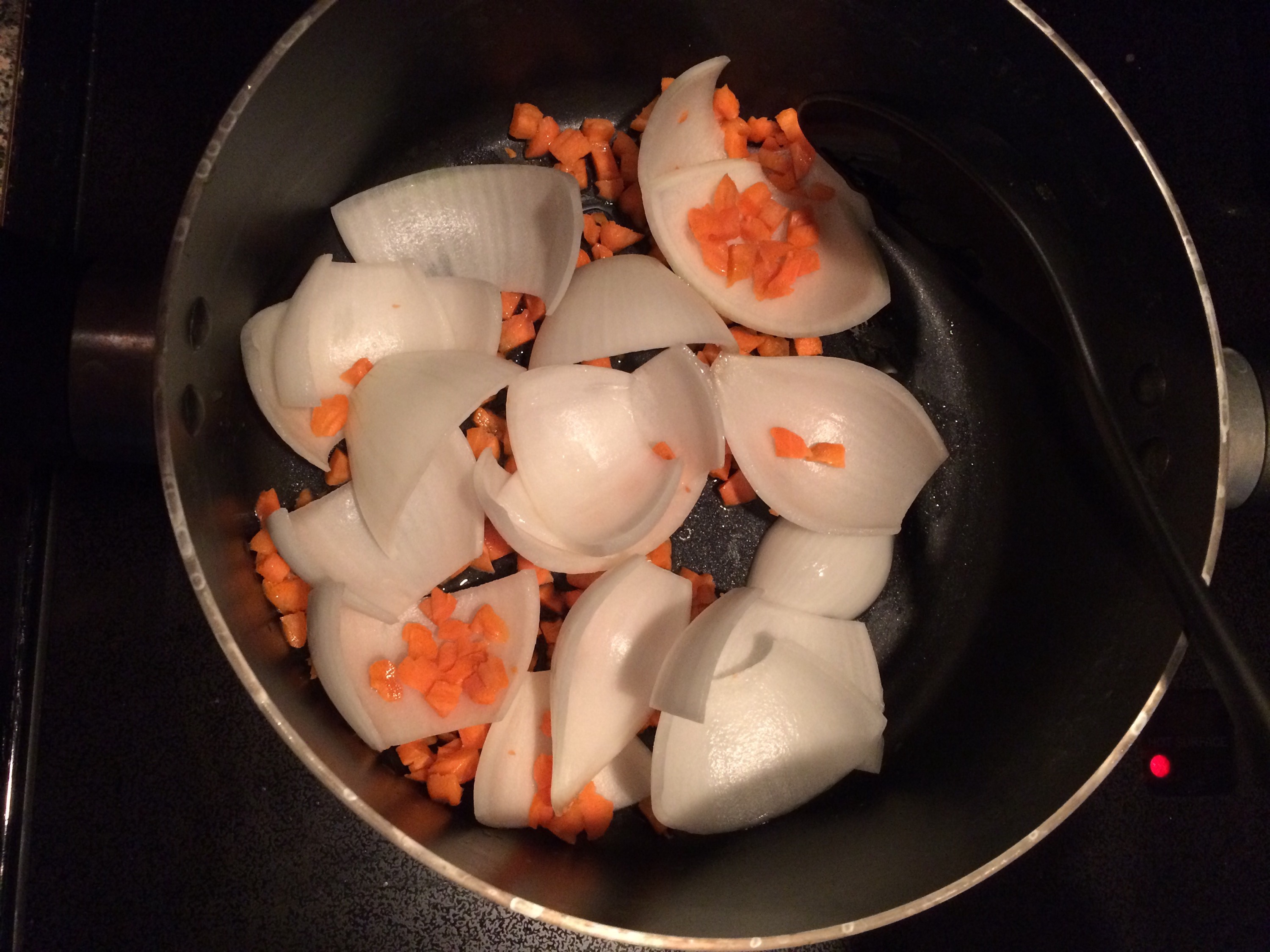 *I know there are a lot of people out there who don’t like onions, so here’s a tip.  If you (or your family) don’t like them, cut the onion into very large chunks, and after cooking, remove them.  This way the soup will still have the onion flavor, but you won’t have the chunks of onion in the soup.*