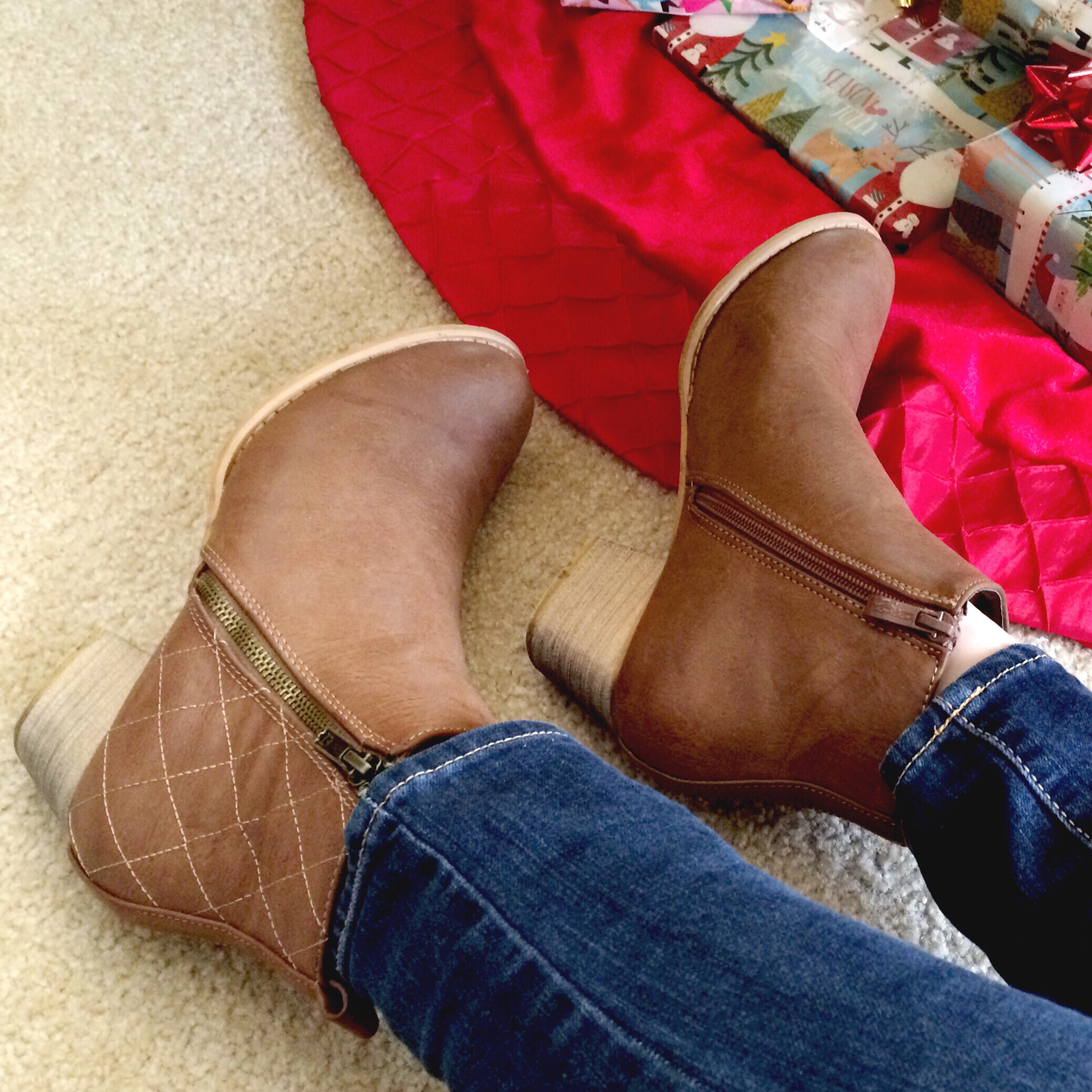 I have also really been loving these two toned booties with a quilted detailing. I am seeing these everywhere! They have a heel, but a chunkier heel so they are easier to walk in. Similar ones here.