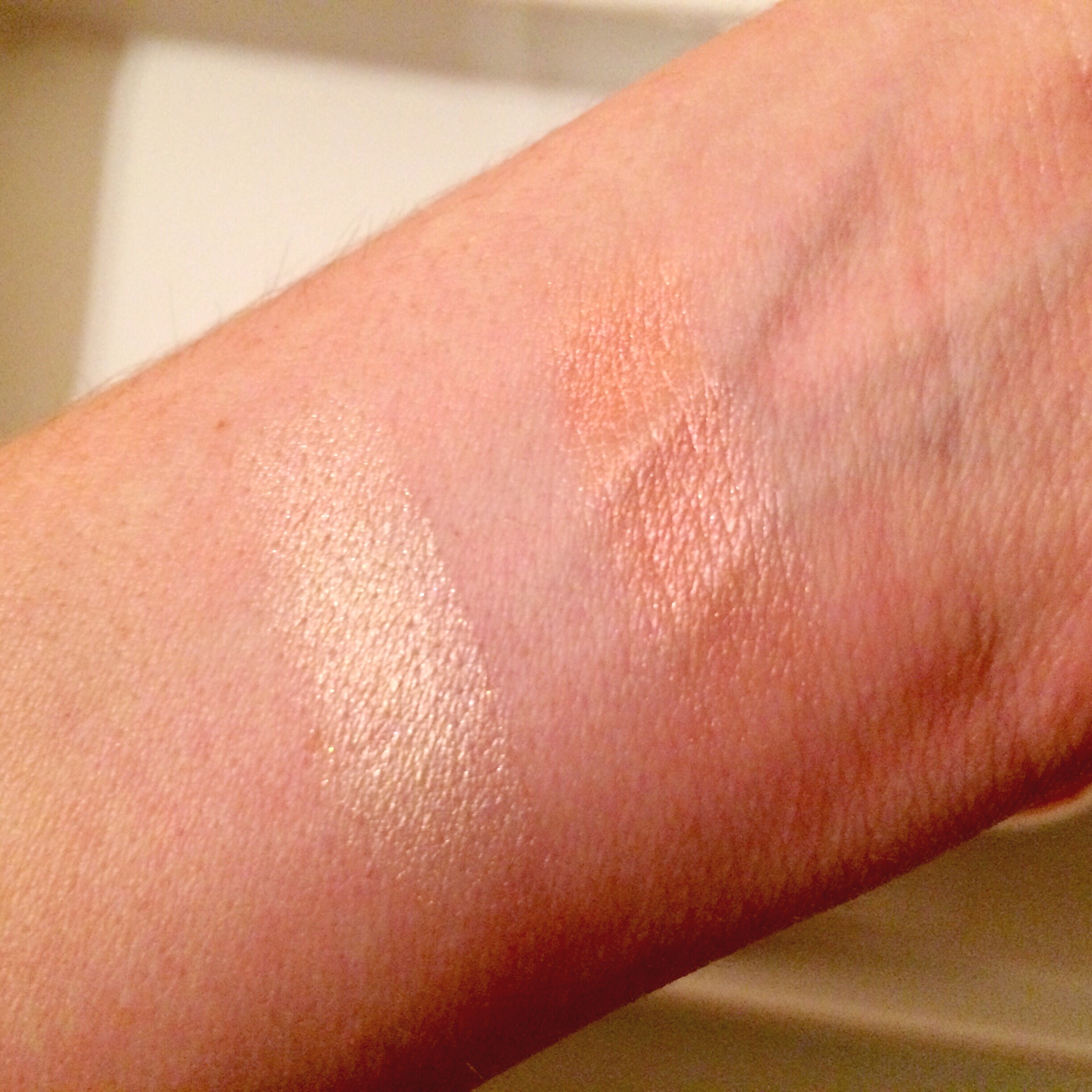 First up are these amazing highlight colors in Lunch Money and Teasecake. These are $8, and come in a lot of pretty colors. These are my two favorite because they are so beautiful! I really like the packaging of these, they are little twist off pots. The texture of the product is a super light creamy mousse, that quickly turns to powder when blended. I find that the best way to apply these are with my fingertips. A little bit goes a long way, and they will give your skin a luminous glow. Lunch Money is a champagne gold color, and Teasecake is a pinky-gold. These are both beautiful on the skin and last all day.