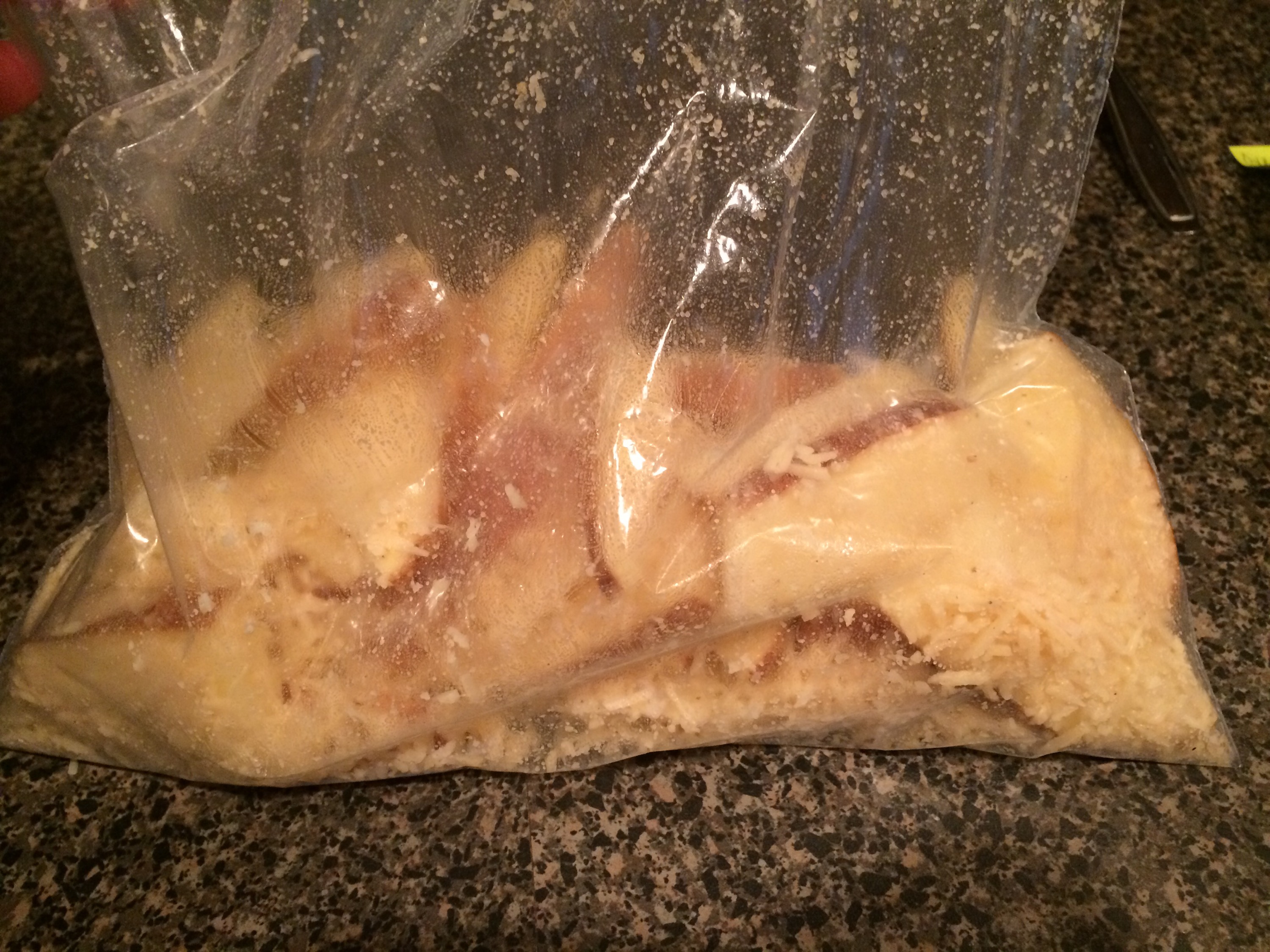 Place all ingredients into gallon size ziplock bag, and give them a good shake!