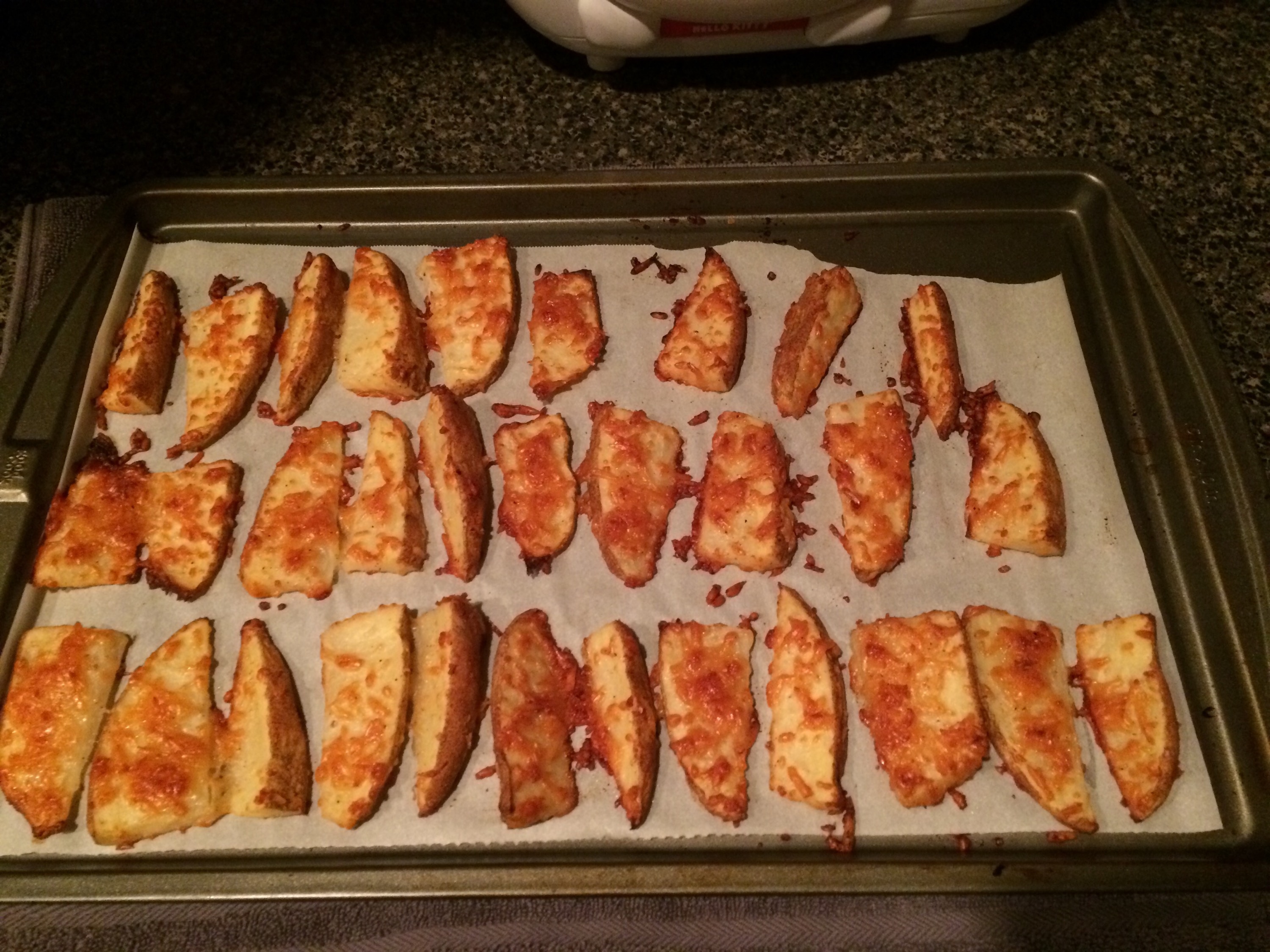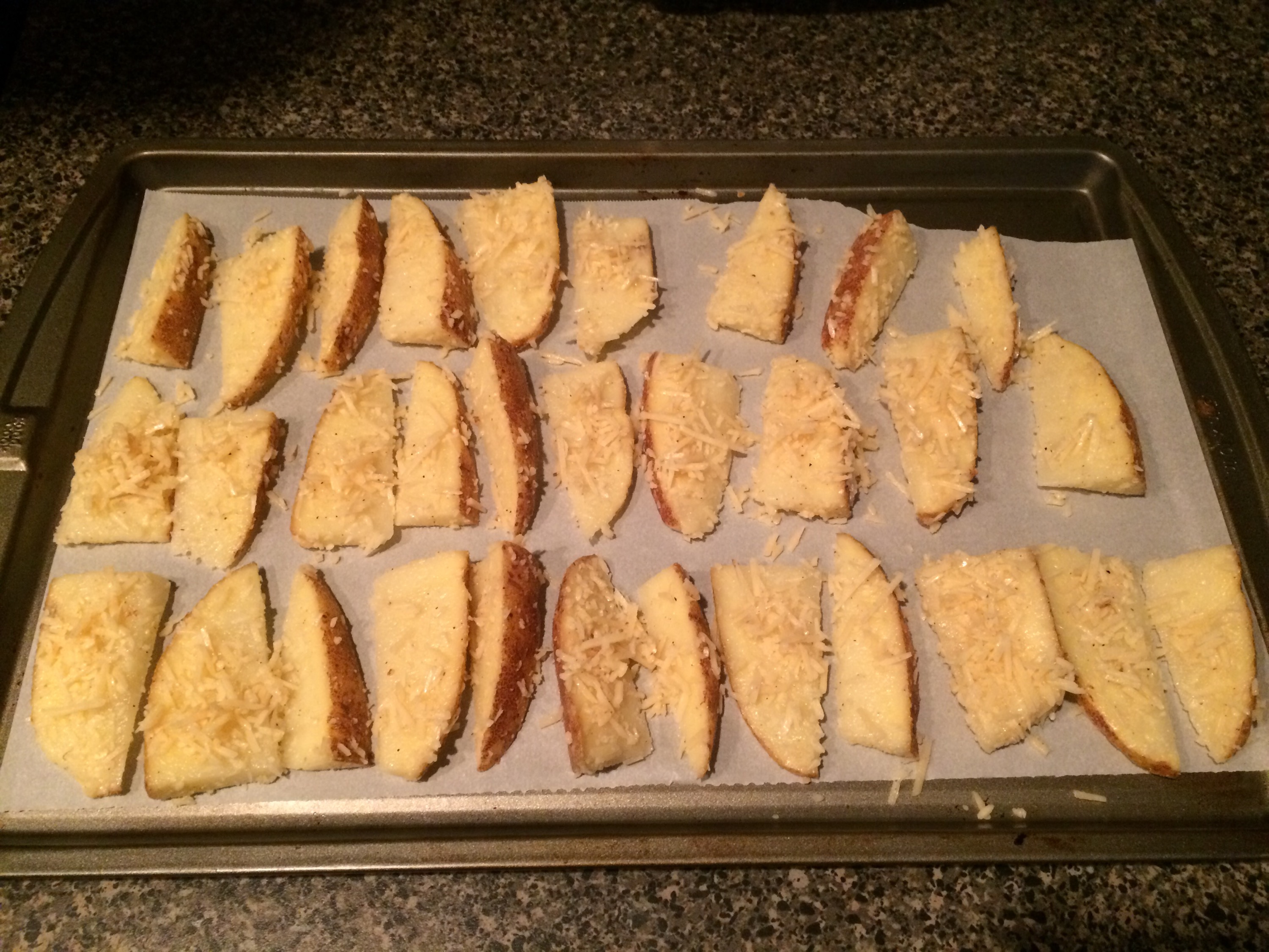 Lay out wedges evenly on a parchment paper lined pan (easy clean-up and nonstick!)