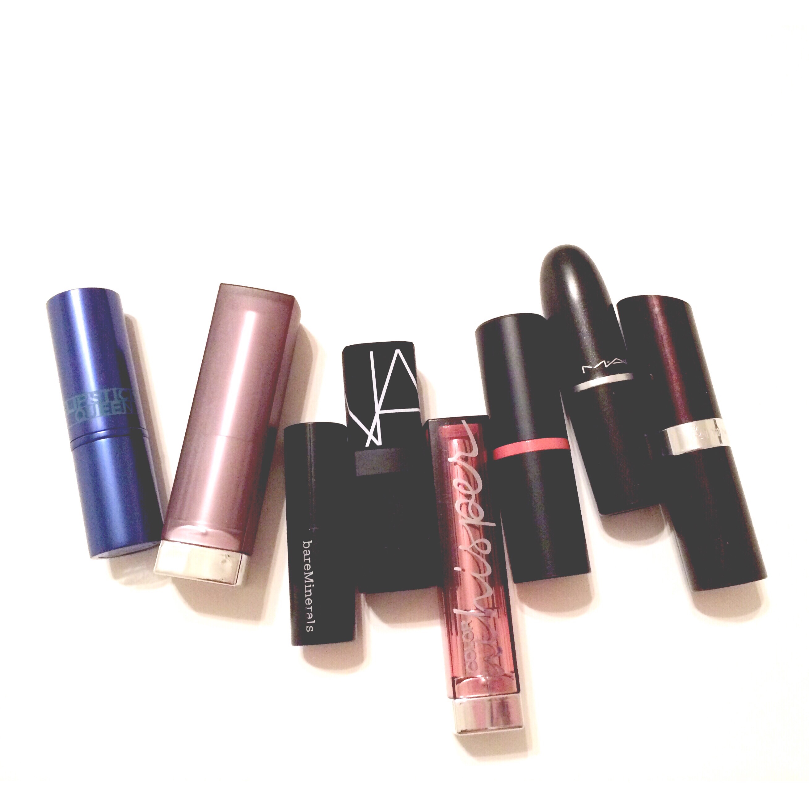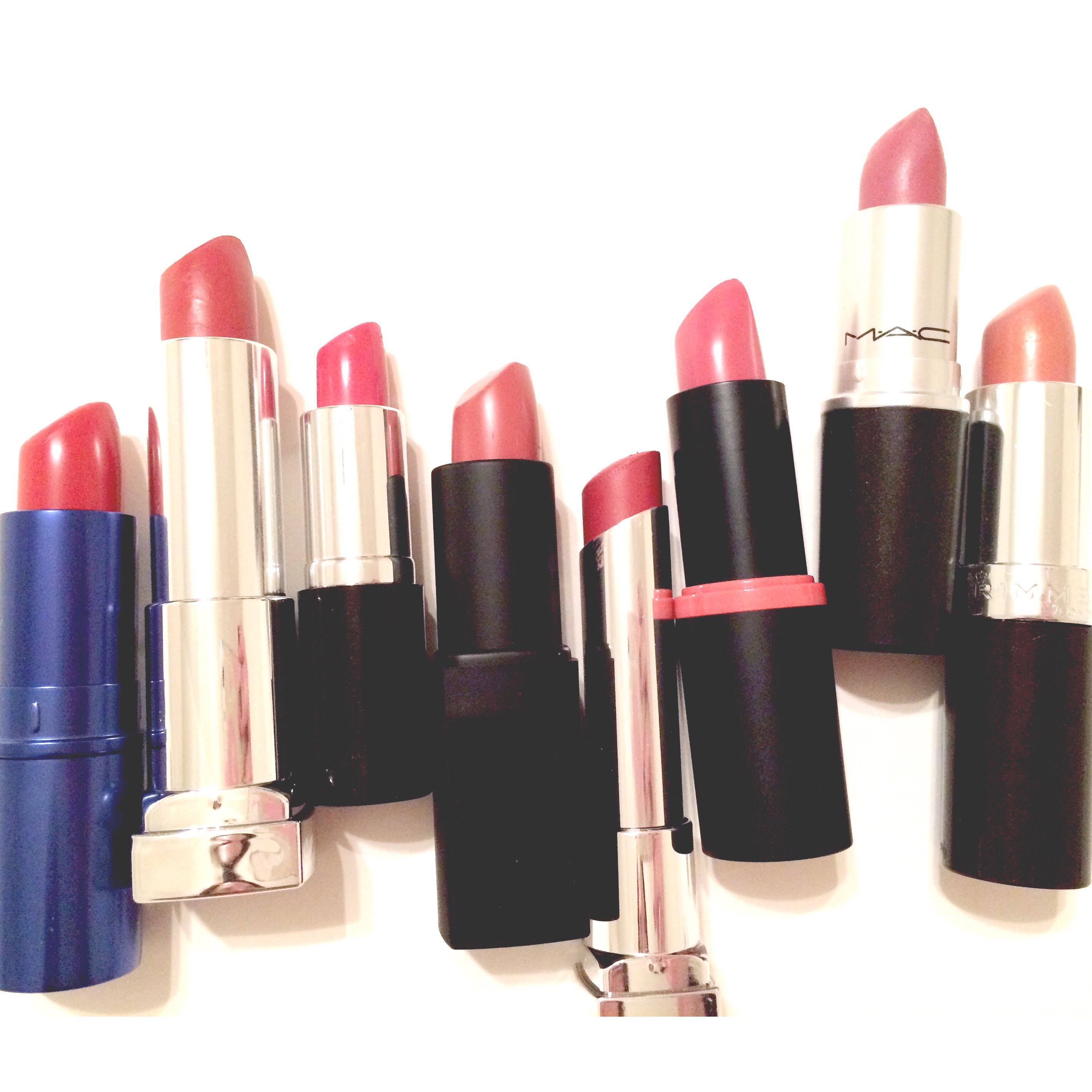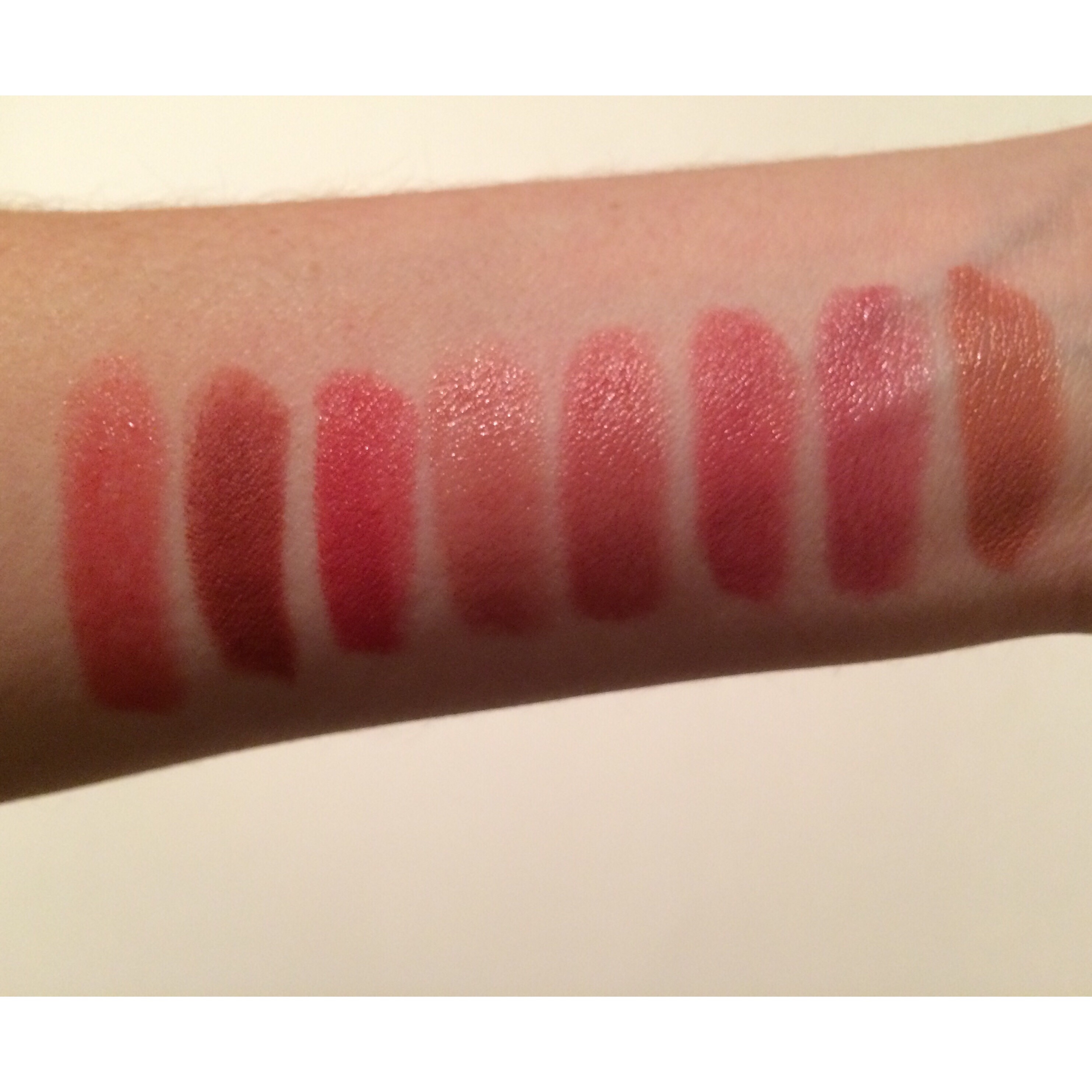 All of these lipsticks are very close to my natural lip color, and all of them give a shiny finish (except one) and are fairly sheer. I like my lipsticks to be moisturizing and feel good on the lips, and all of these fit the bill.