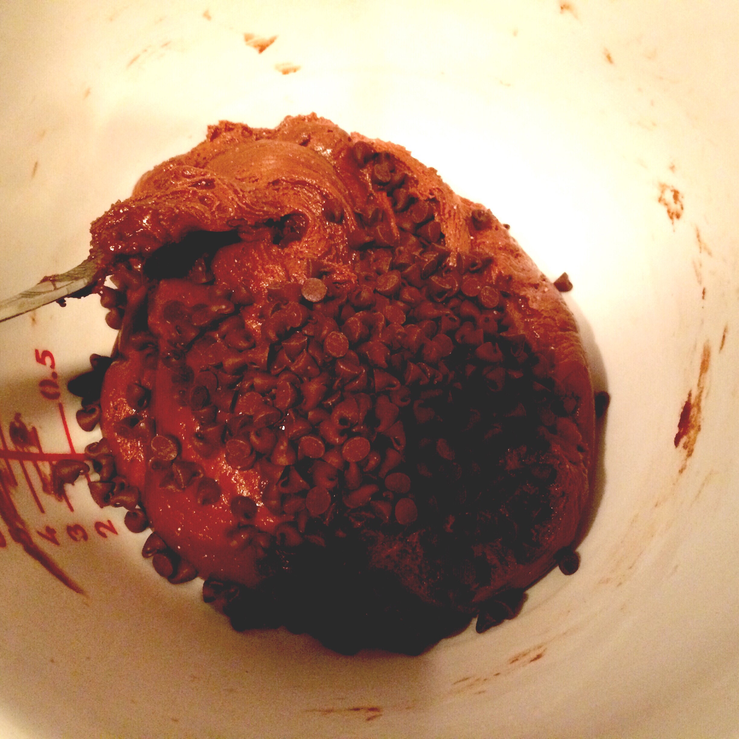 Today we are making the easiest cookies ever! These are chocolate cookies made with cake mix that come out so chewy and delicious! The best part about these cookies is that you can add anything to them – nuts, m&m’s, chocolate chips…whatever you like! I will be using mini semi-sweet chips, because those are my favorite. Let’s get started!
