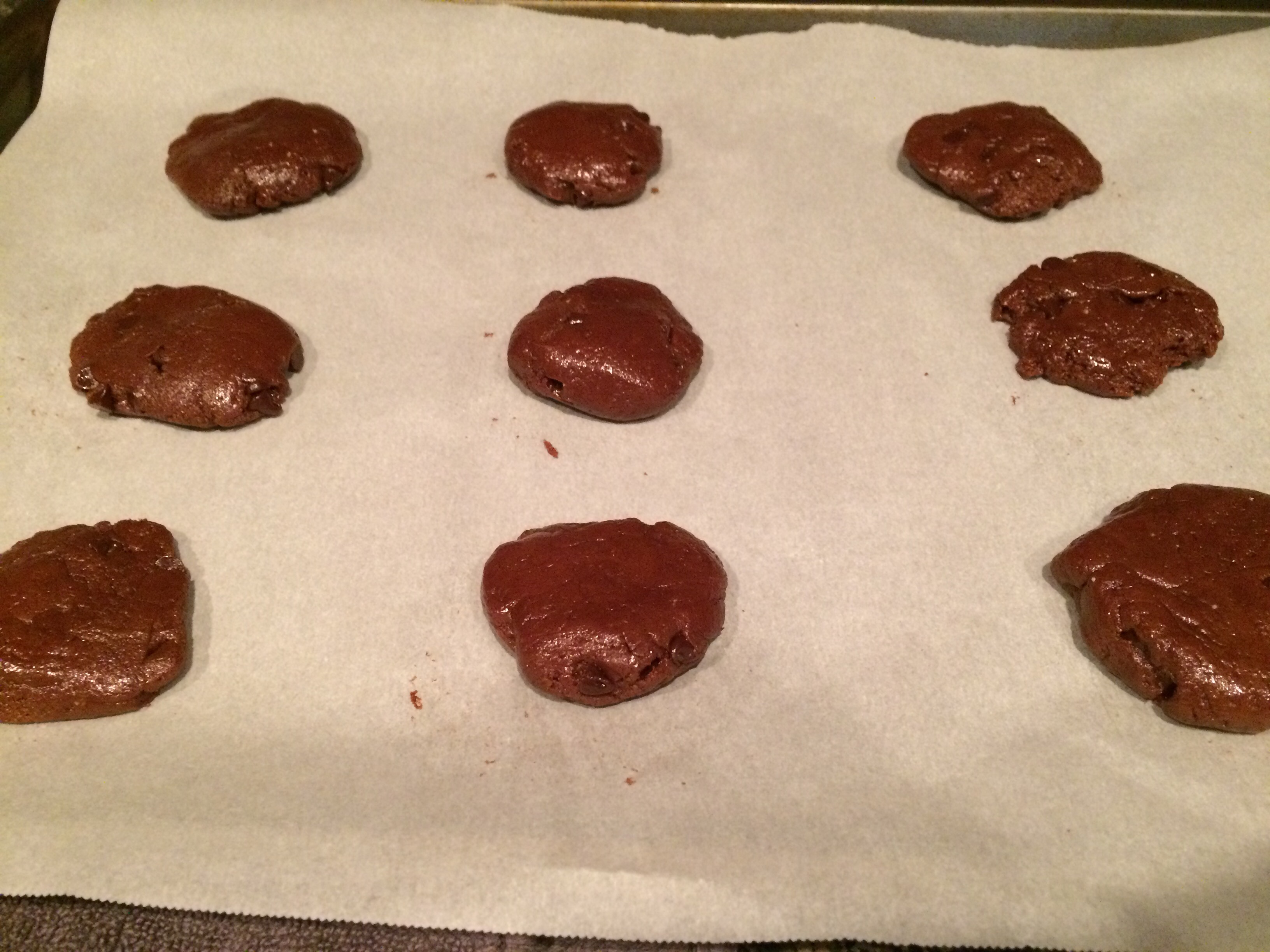 Line a baking sheet with parchment paper and drop cookies onto pan about 3 inches apart. Flatten down with fingers.