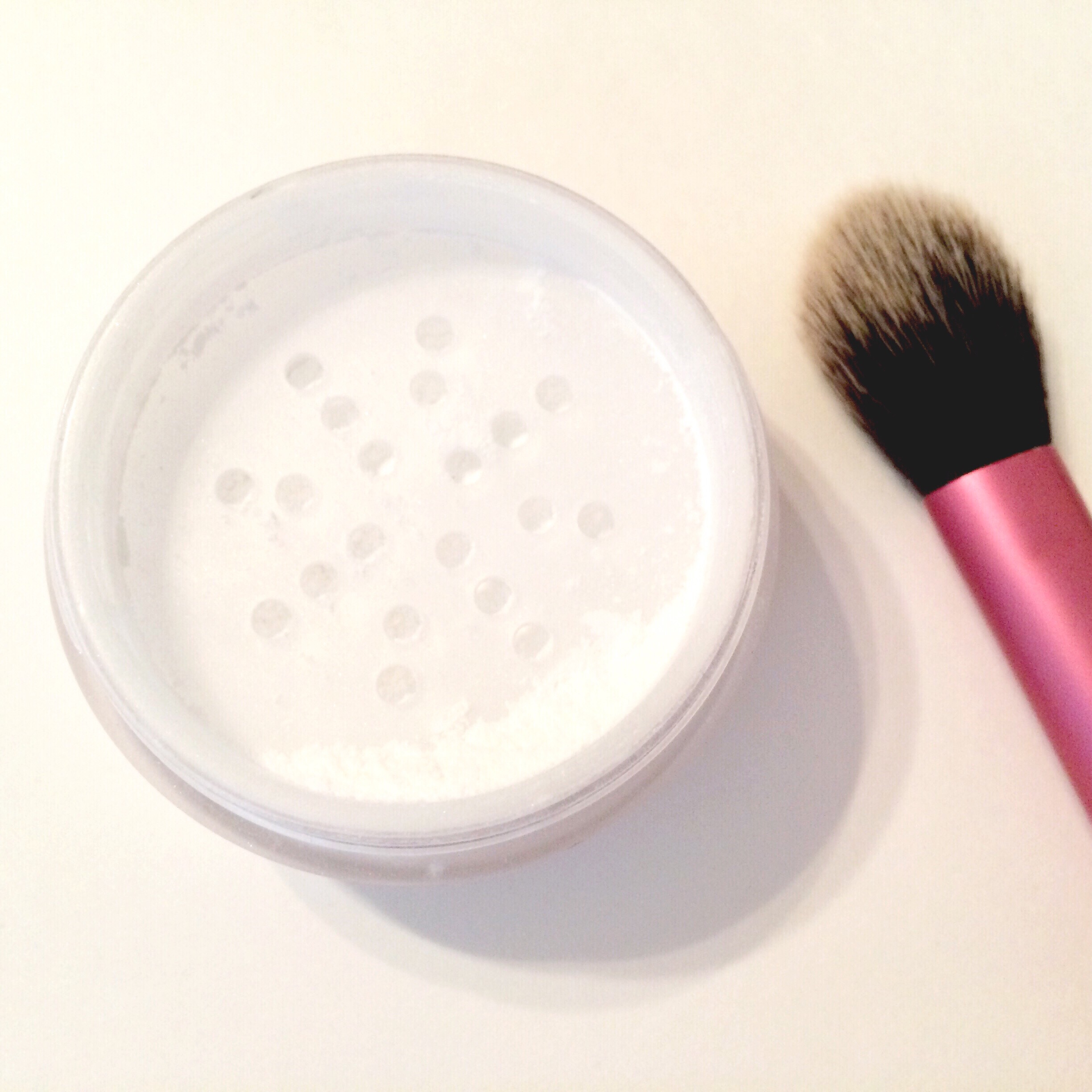 Ok, so the last thing I like to do is to make sure that this makeup isn’t going to go anywhere! I like to use a loose translucent powder, like this Laura Mercier Secret Brightening Powder to set my makeup. This powder is super finely milled and you only need a tiny bit. It has light reflecting particles in it that help with brightening. I like to use my Real Techniques Setting Brush to sweep it on lightly. Any small fluffy brush will work. Using a powder to set will help with creasing, and will also help it to last all day. I also like the NARS Light Reflecting Powder in Translucent Crystal for this step. For a drugstore option, the Rimmel Stay Matte powder in Transparent works great, too!