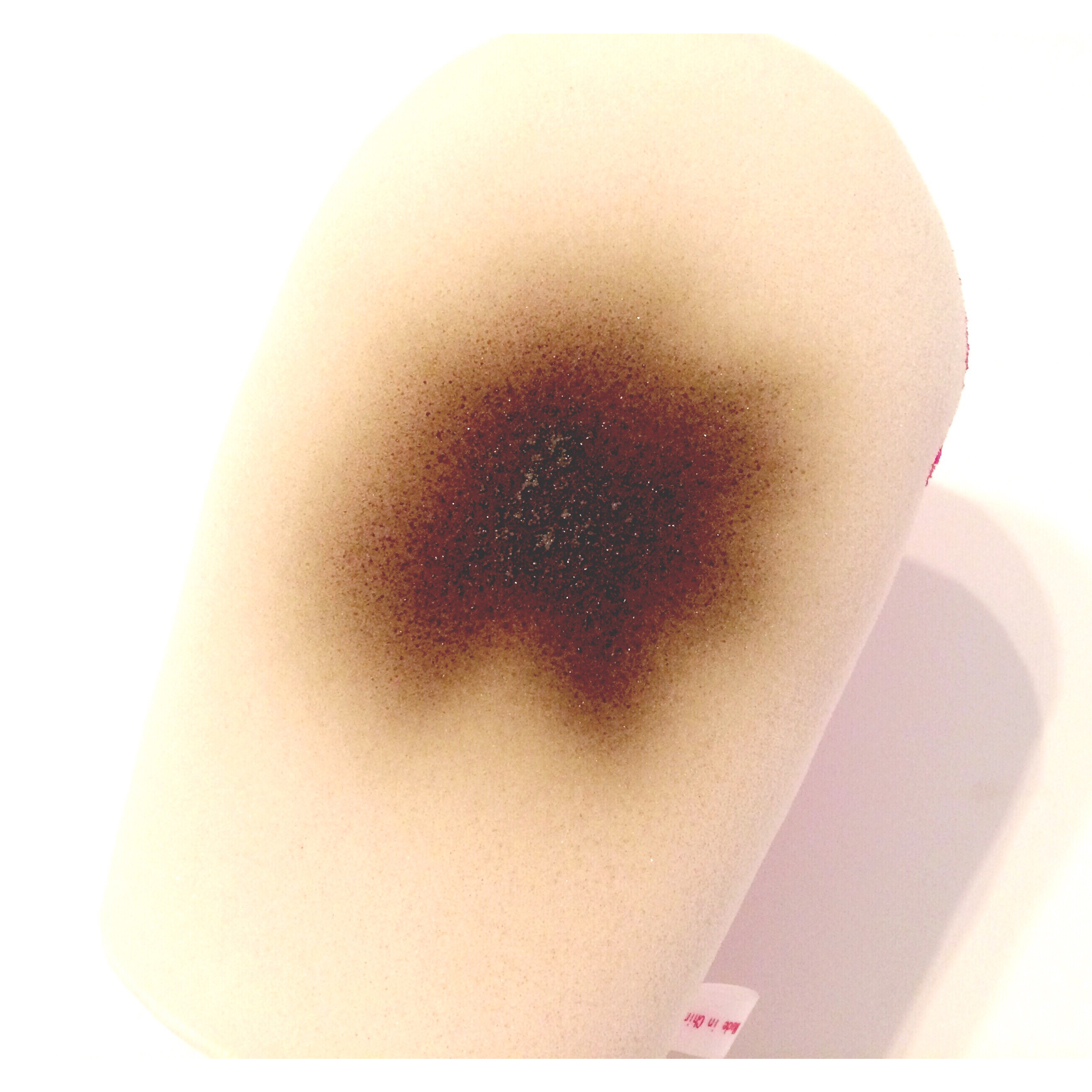 It definitely is a green/black color, that was a little scary! I buffed it into my skin and it definitely gave my skin a green tint. You want to work quickly while doing this, and make sure to go over multiple times with the mitt. It dries quickly and non-sticky.