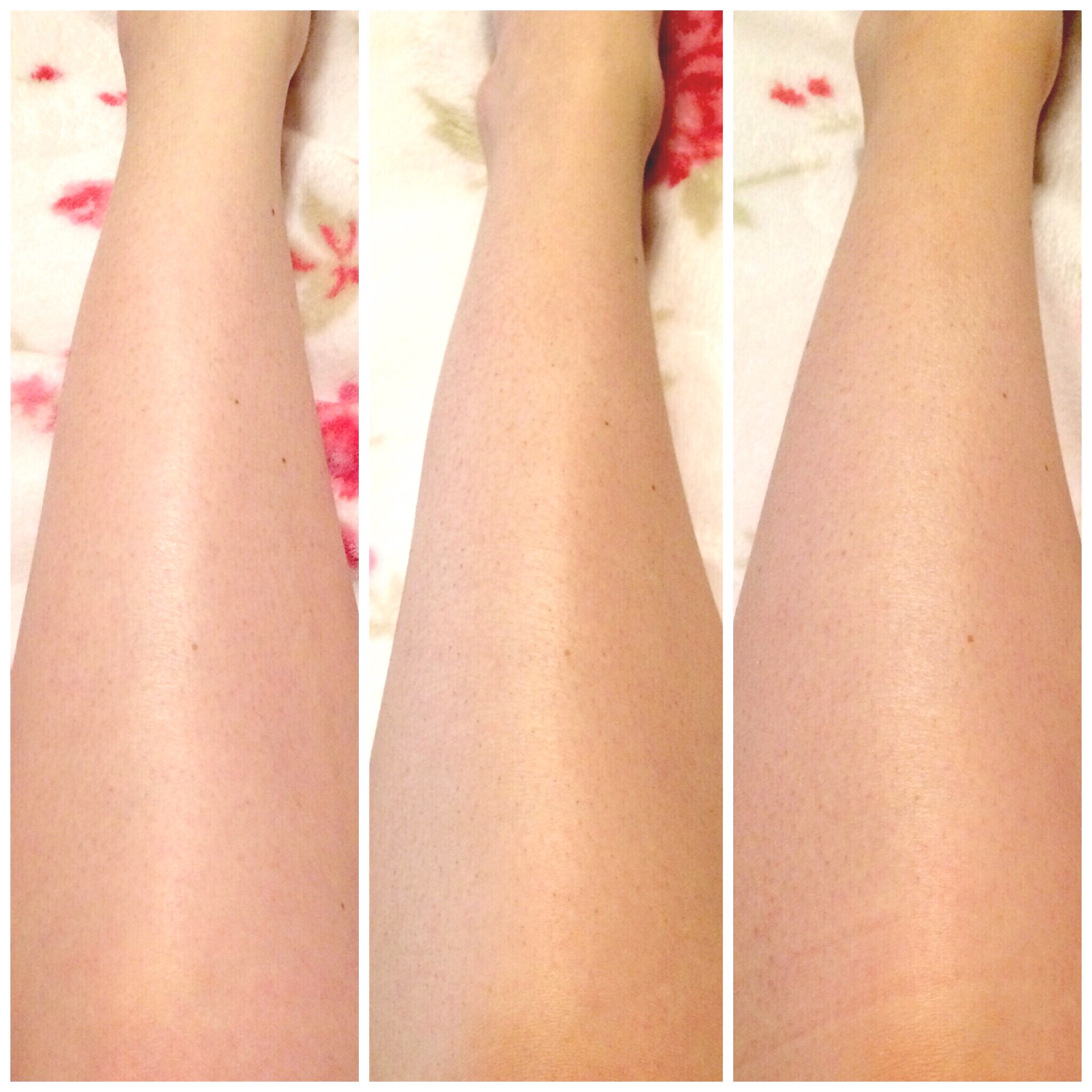 Here are pictures of before, after one hour, and after three hours. These pretty much look exactly the same to me; this tanner did nothing.