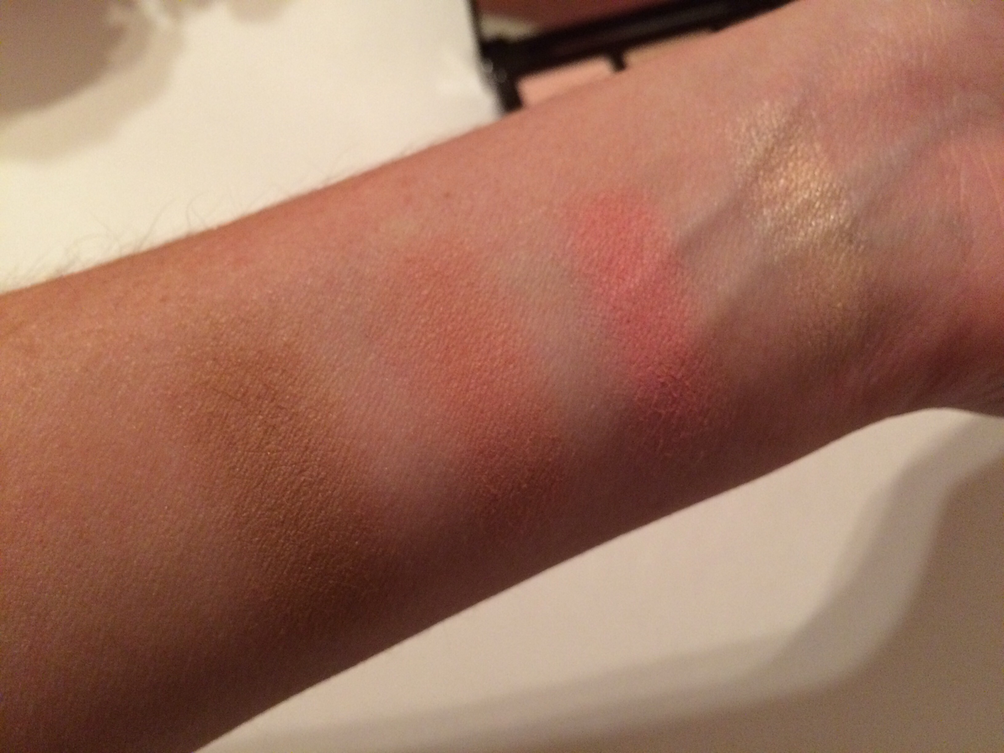 The last color is the highlight. This highlight is so pretty. It is shimmery, champagne gold that gives such a nice sheen to the cheekbones without glitter or sparkle. Just glow.