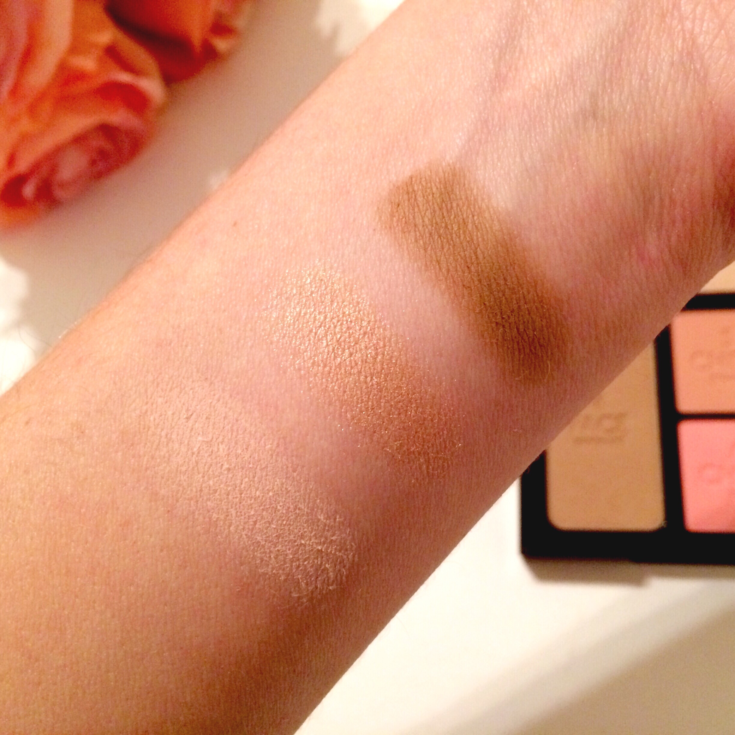 Next, there is a nice cool toned bronzer with some shimmer. The shimmer is very minimal and doesn’t show up once applied. This color isn’t orange at all, and gives that sunkissed look.