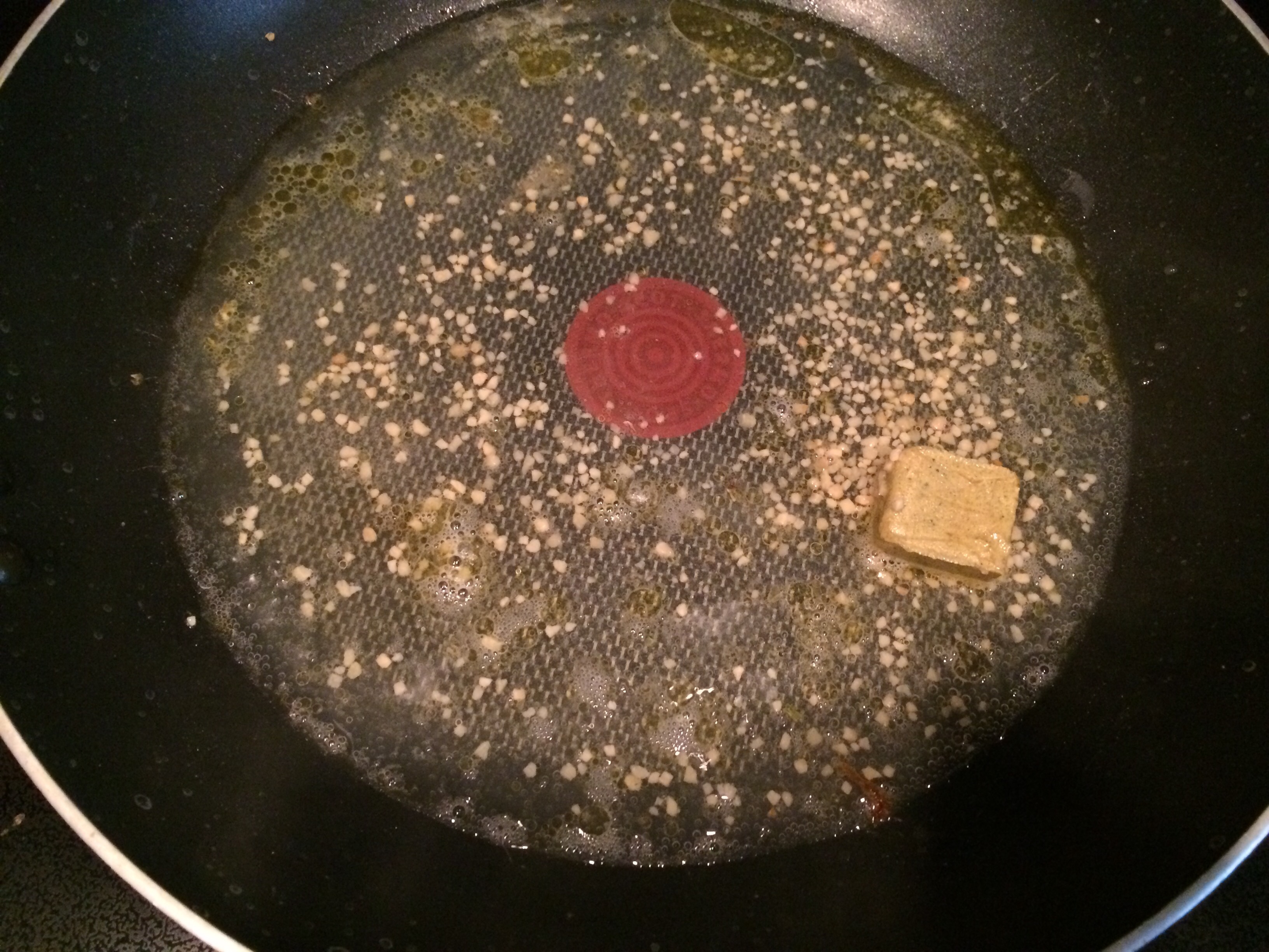 After browned, place chicken breasts into crockpot. In the same skillet, add water, lemon juice, garlic, and bouillon. Mix together and bring to a boil. Make sure the bouillon is dissolved.