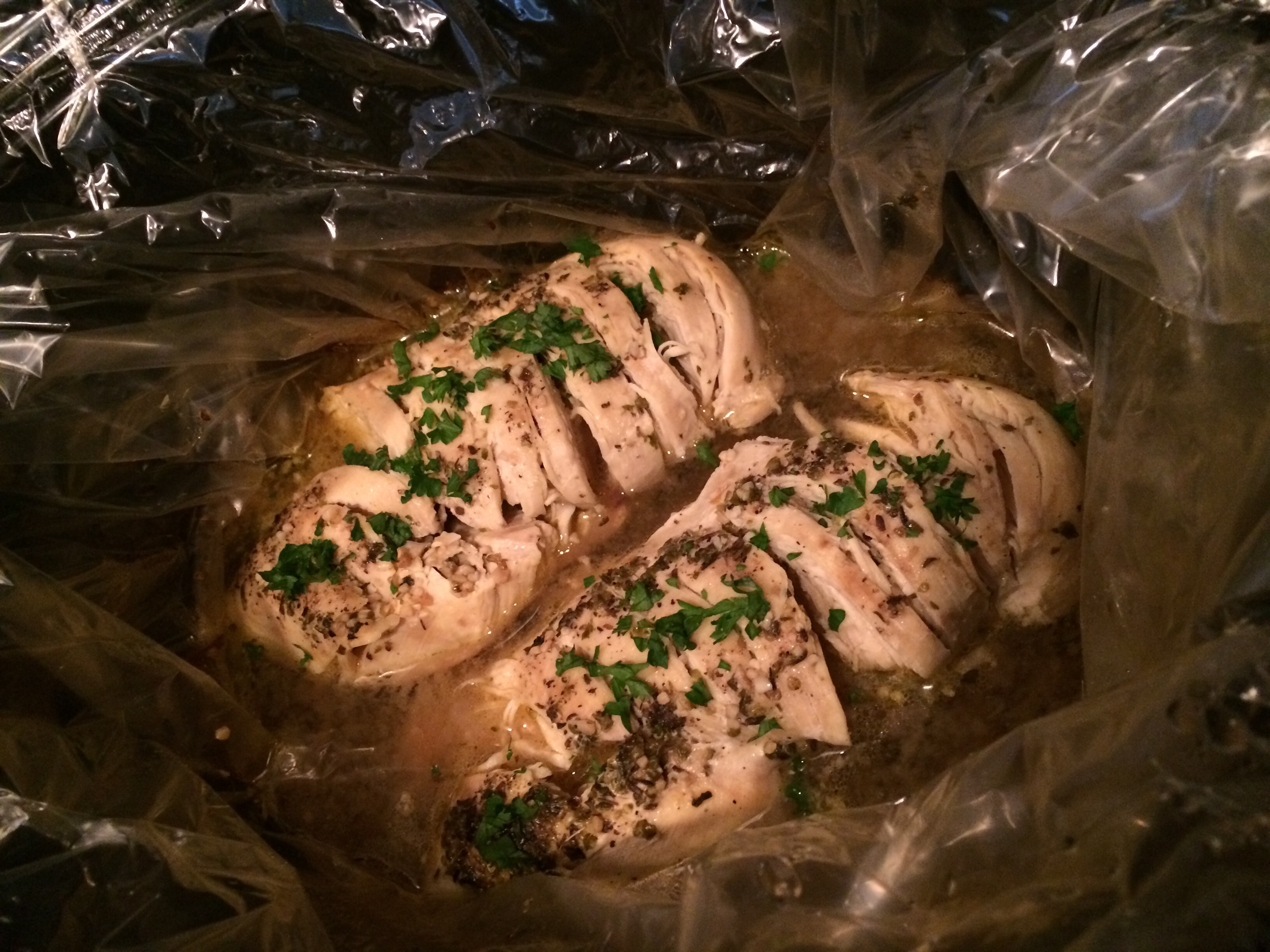 After about 4 hrs, I like to start cutting the chicken so that it absorbs the liquid more.