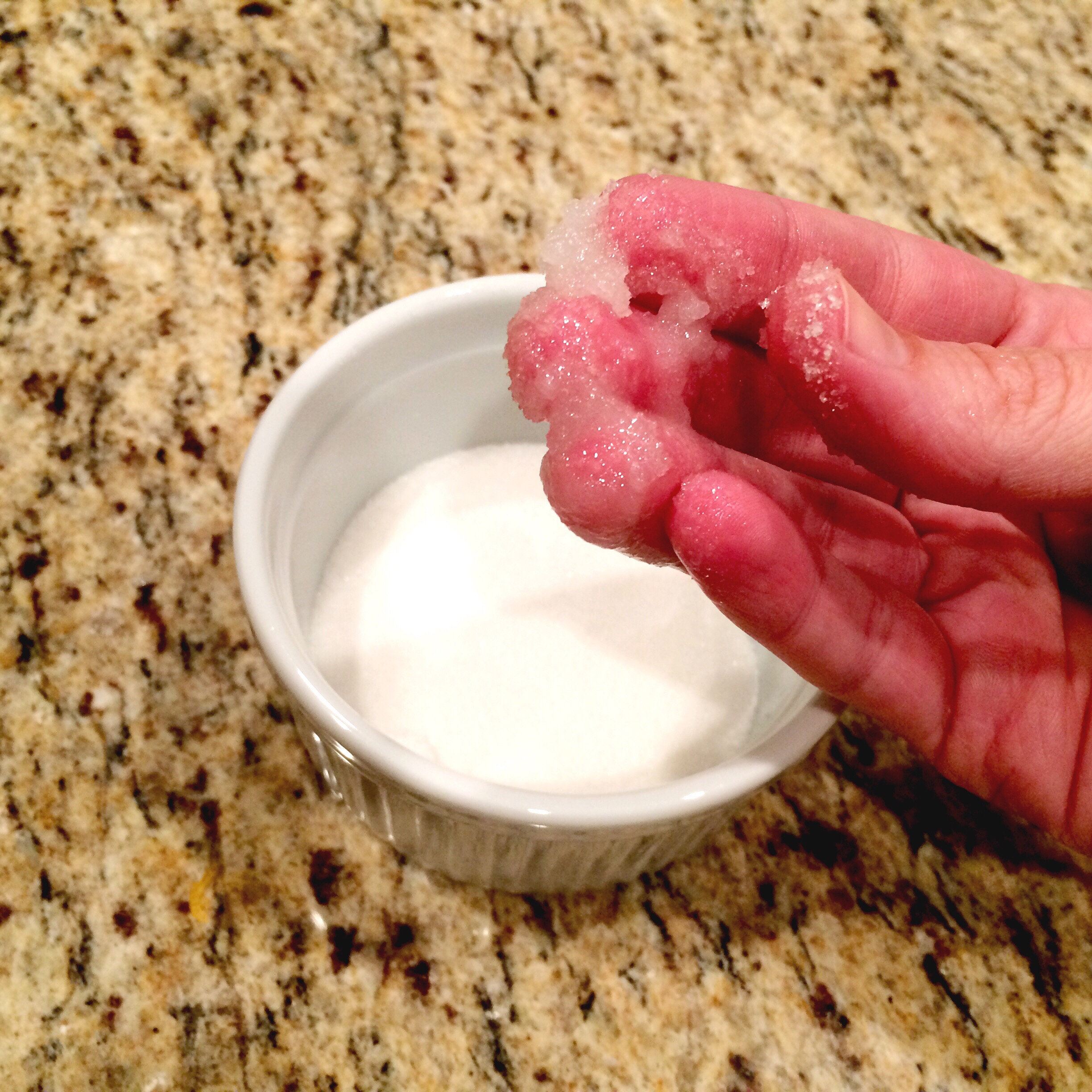 You can use a fancy lip scrub, or you can just go in the kitchen and mix up some sugar and coconut oil and scrub your lips. This gets rid of any dead skin and flakiness, and preps your lips for some color!