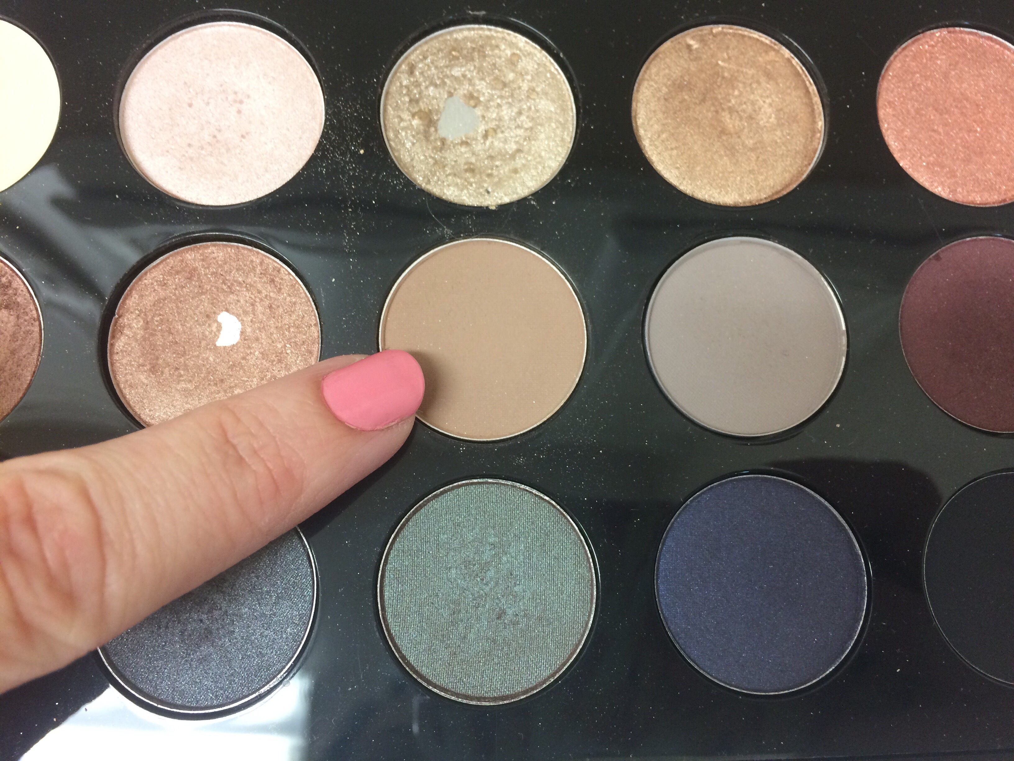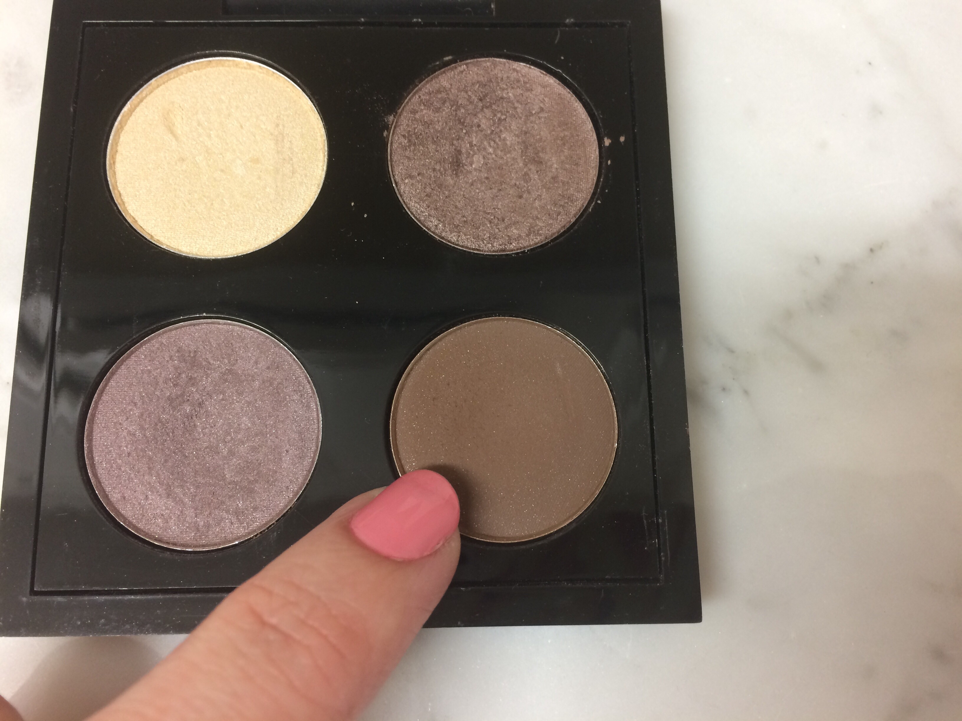 I like to start off with a base color on my lids, and up through my crease. I usually use a medium toned matte brown color like MAC’s Wedge.