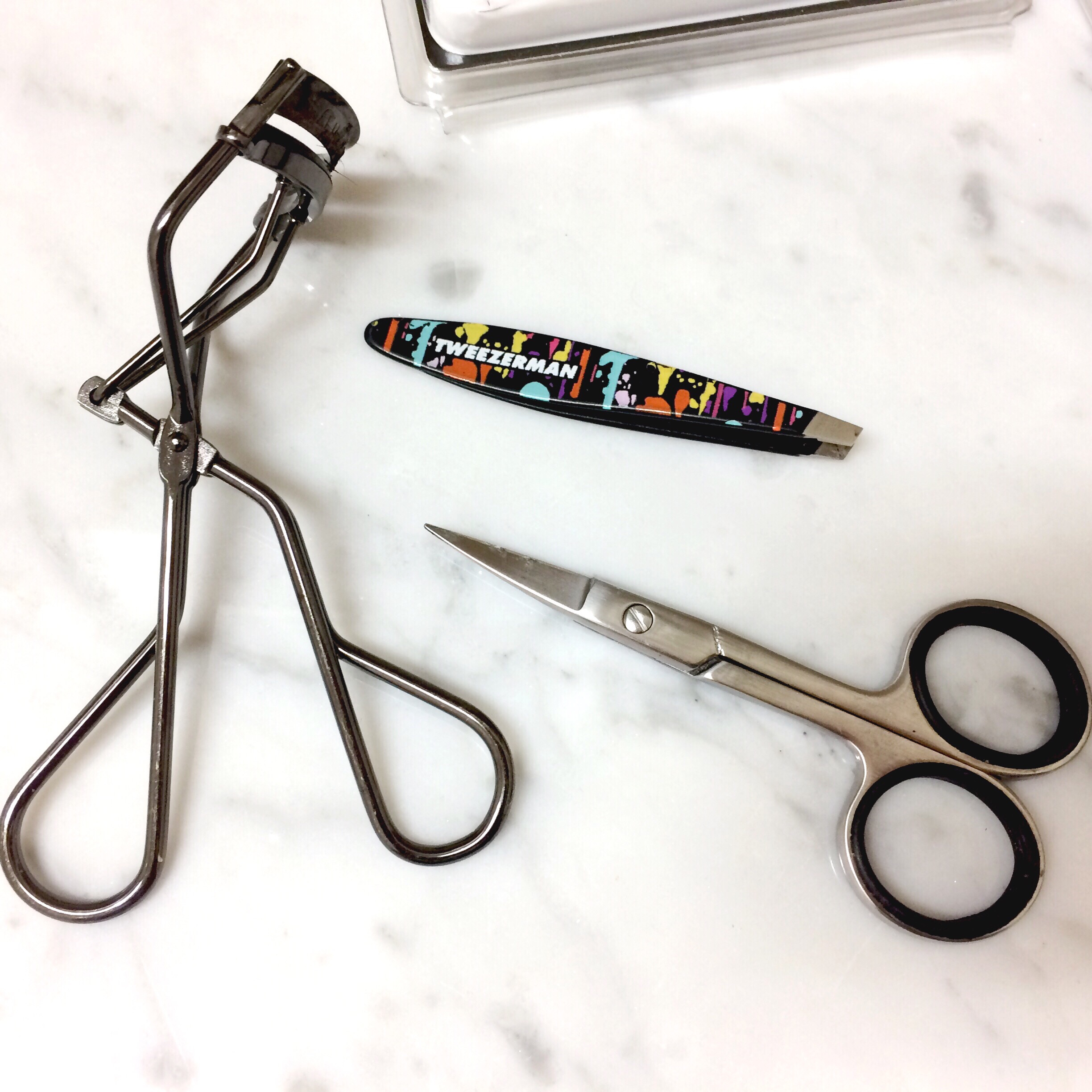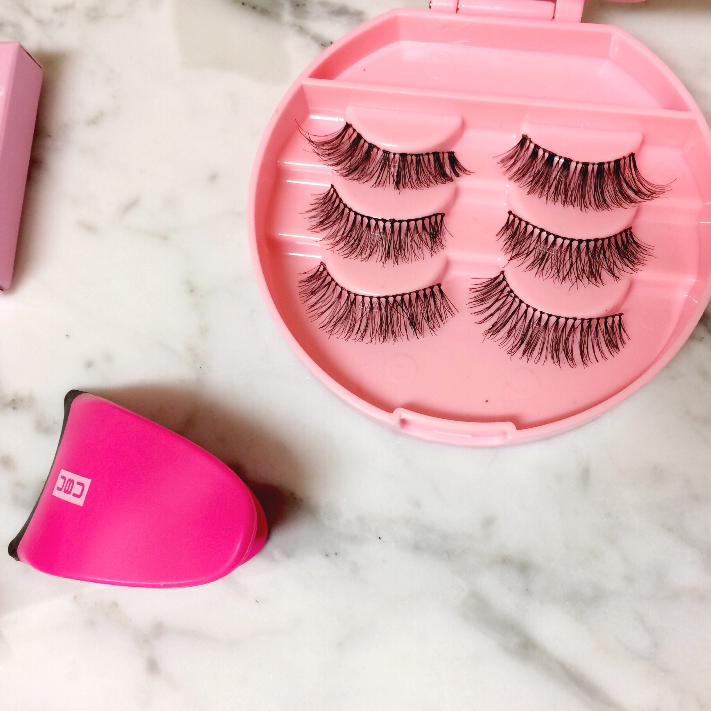Now to apply the lashes, you can just use your fingers, but if you are a beginner, you can use tweezers or a lash grabbing tool like the one pictured with the lash case to apply. I recommend placing the lash in the middle of your lashline first, and then apply the sides, starting with the inner corner, and then the outer corner. This way you will make sure to have it secured. I always like to go over he band with a little bit of liquid liner, and keep extra glue in my purse just in case!