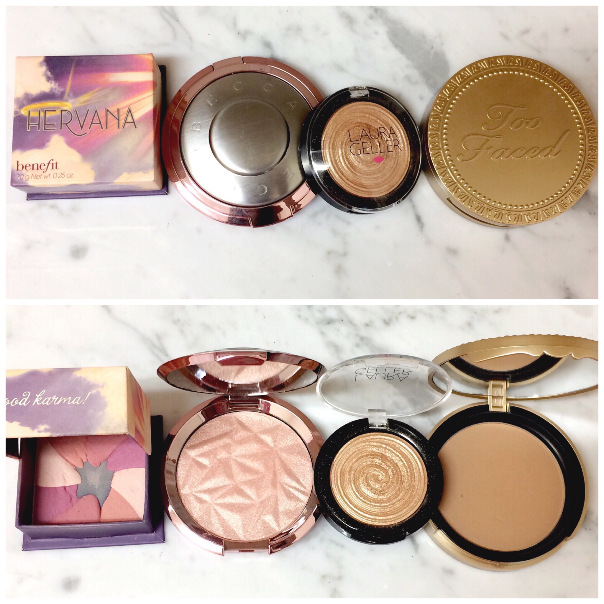 Now, for highlight.  My ride or die Laura Geller Baked Gelato Swirl in Gilded Honey had some competition this year with Becca Rose Quartz (similar here)They are totally different colors, but both give a beautiful, pigmented, liquid metallic look and lemme tell ya- HIGHLIGHT ON FLEEK.  The tops of my cheekbones have never looked so good!