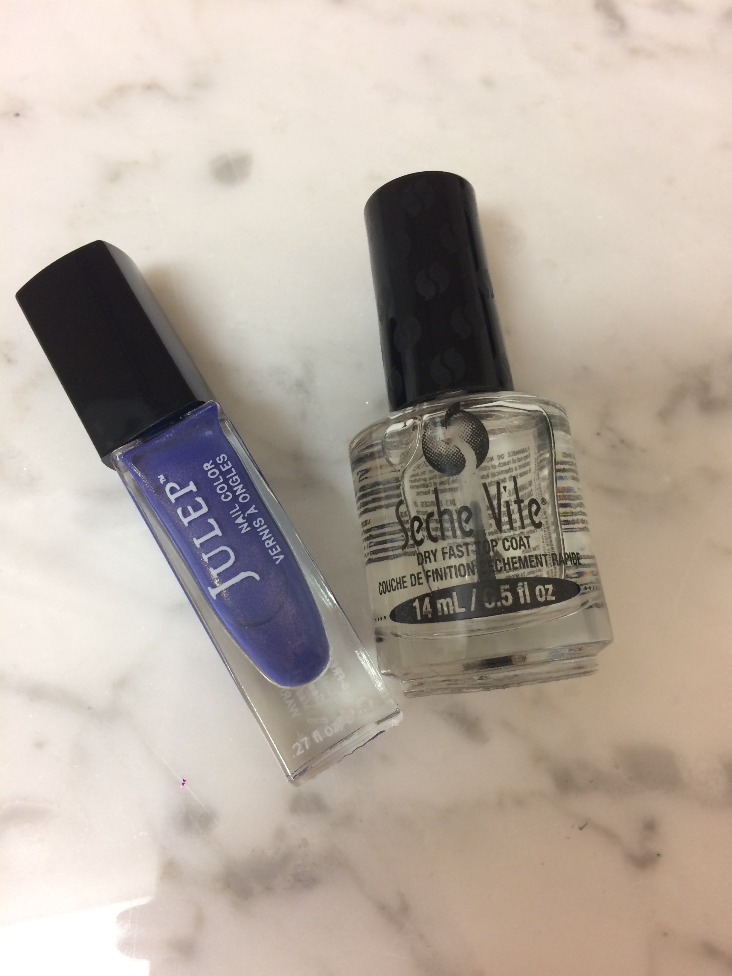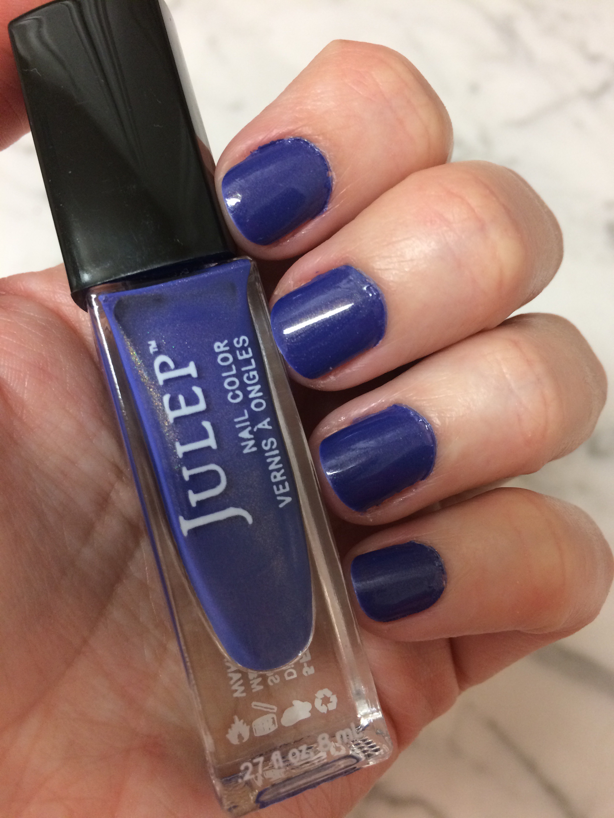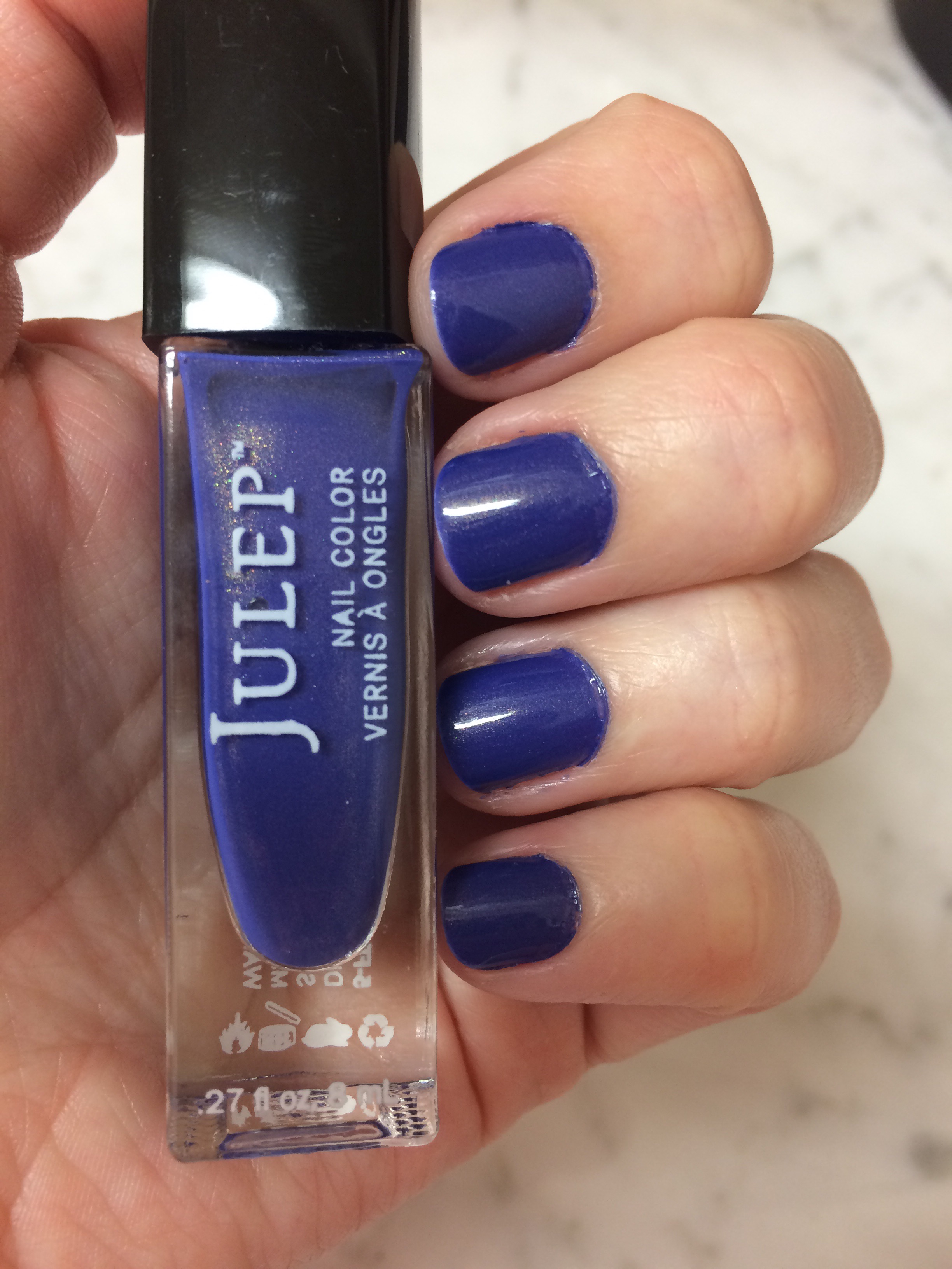 This color is called Paula by Julep. It is a sort of, royal blue. It has a lot of purple to it, though. It is an absolutely gorgeous color, and has a gold micro glitter in it that gives a nice sheen to the nails.