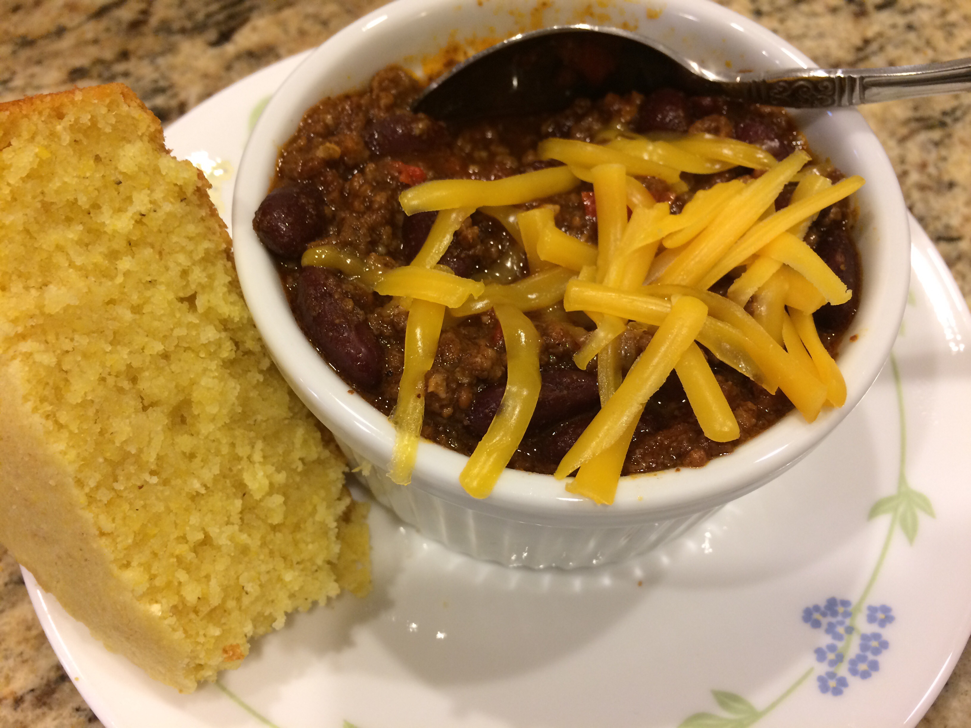 One of my husband JJ’s favorite things to eat is chili with cornbread. This meal is super easy and takes all day in the slow cooker. The thing I love about chili is that you can add whatever you want to it, and make it as spicy or as mild as you like. My husband loves to have beans in his chili, so I add those in for him. To go with it, a delicious and slightly sweet cornbread. Let’s get cookin’!