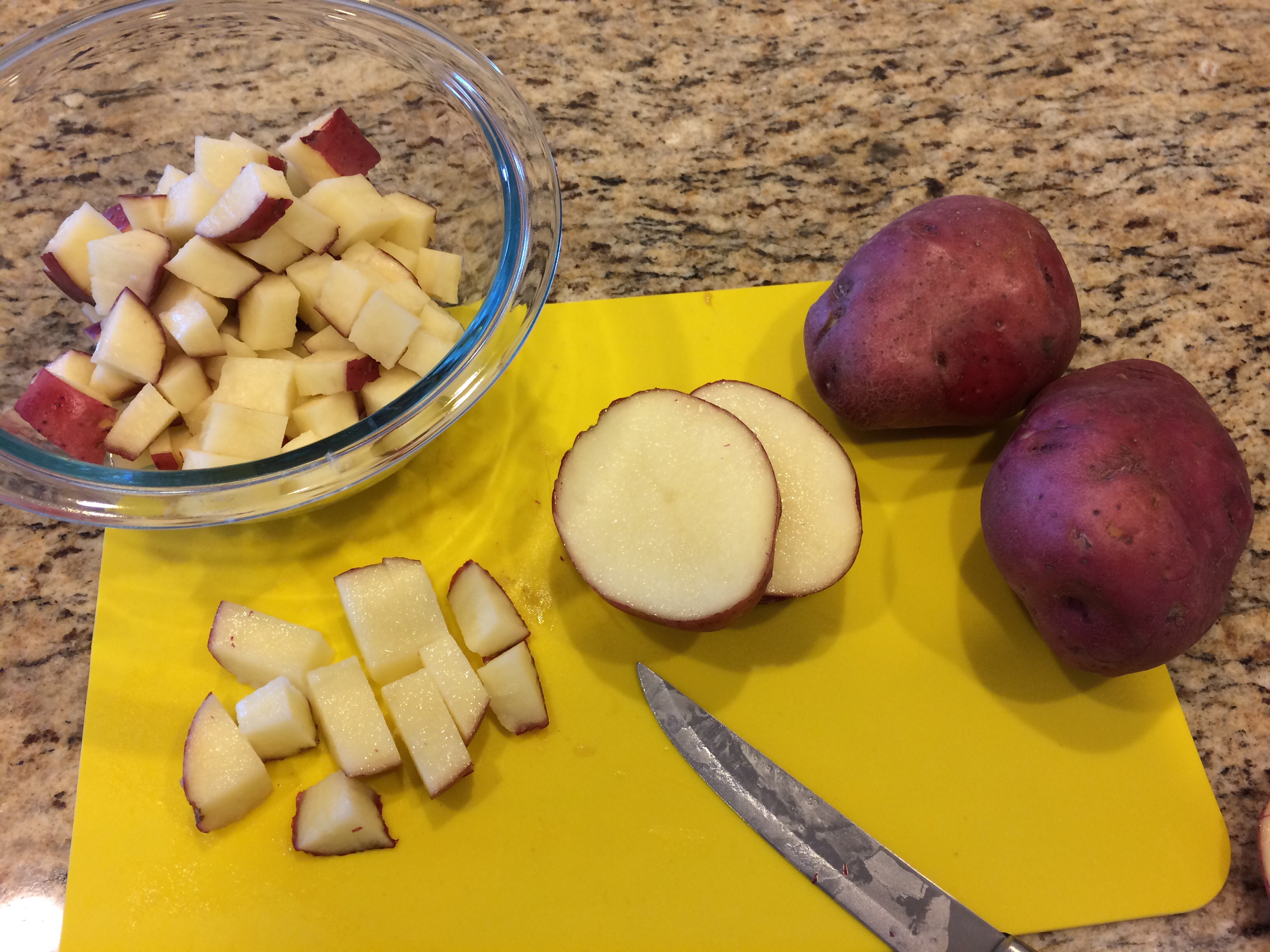 I’ve already posted my shake and bake potato wedges, but I just have to share another potato recipe with you! These are “pink potatoes” and they are my 2 1/2 year old daughter Ashley’s favorite! She eats these so fast, and is always asking for me to make them! They are so easy and delicious. Let’s get started.