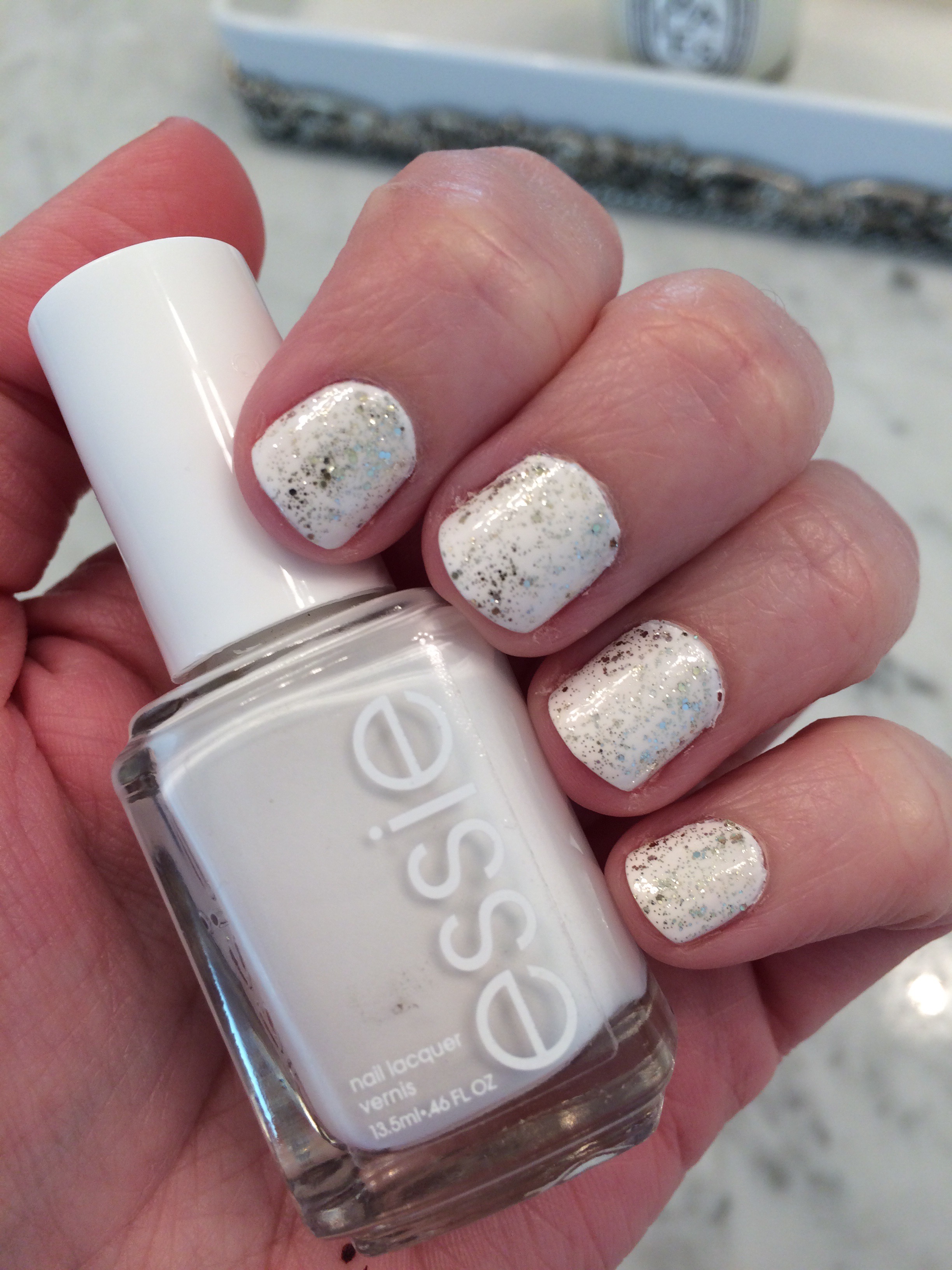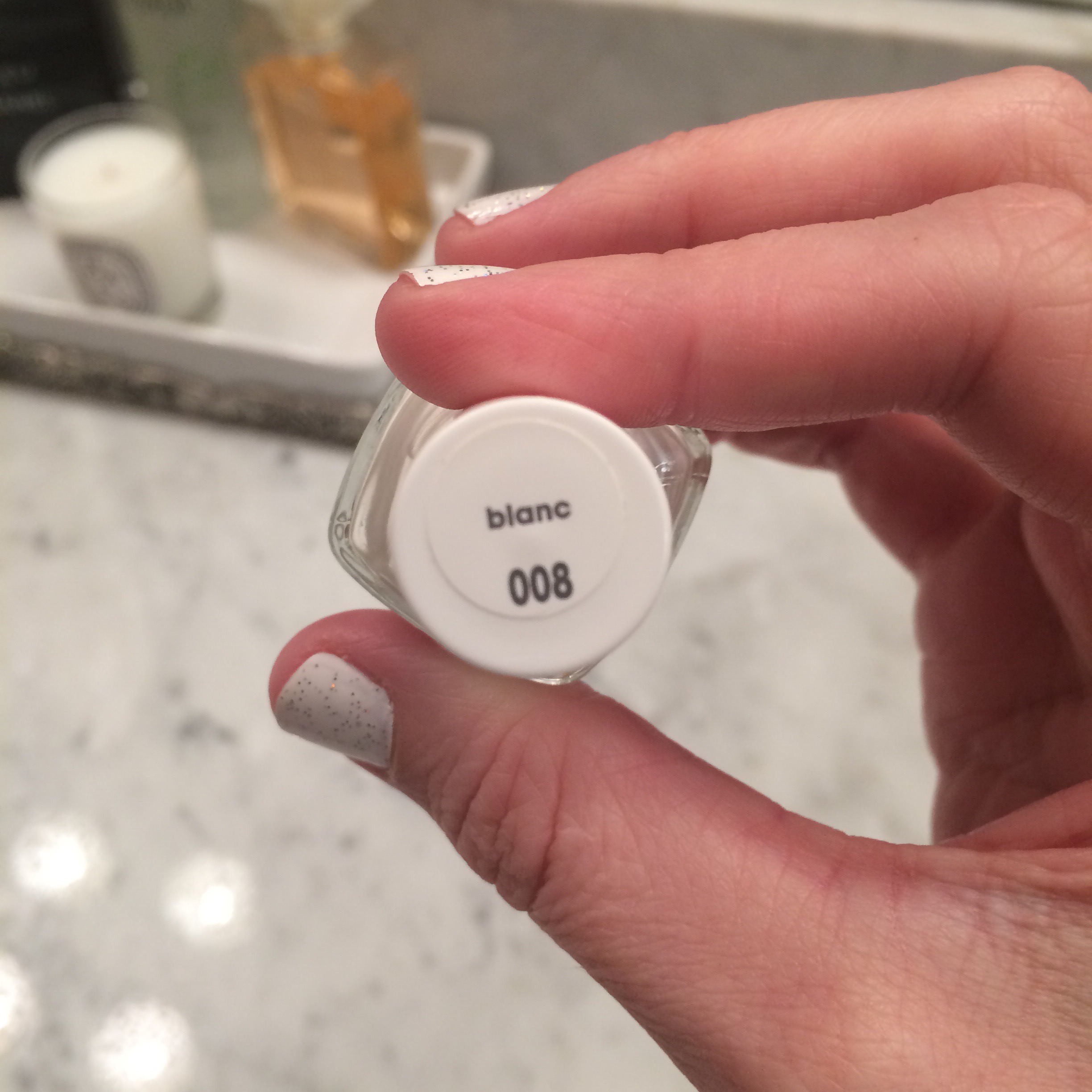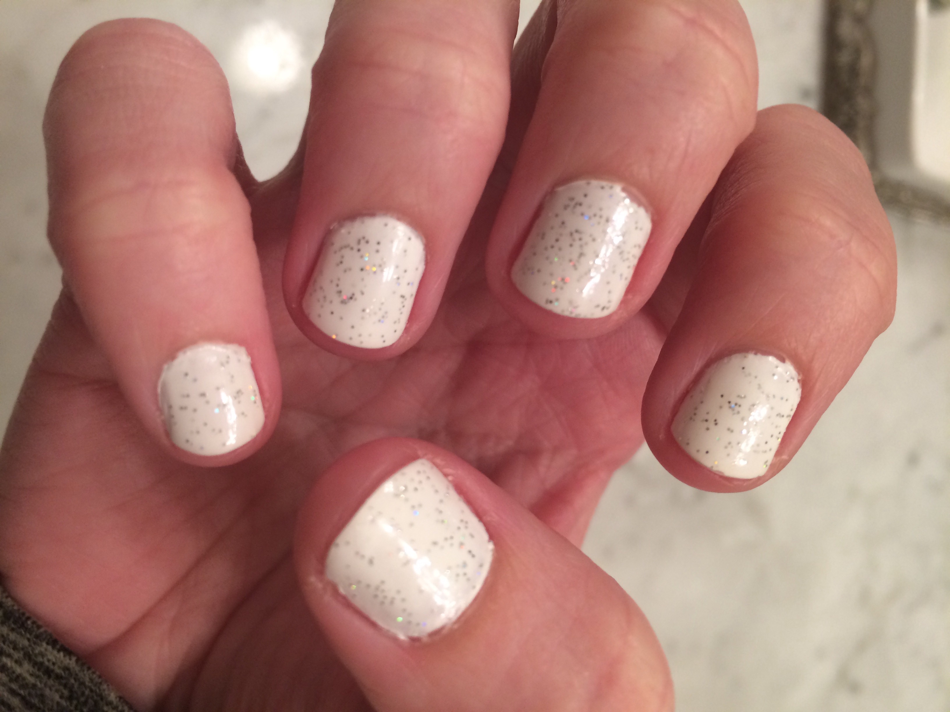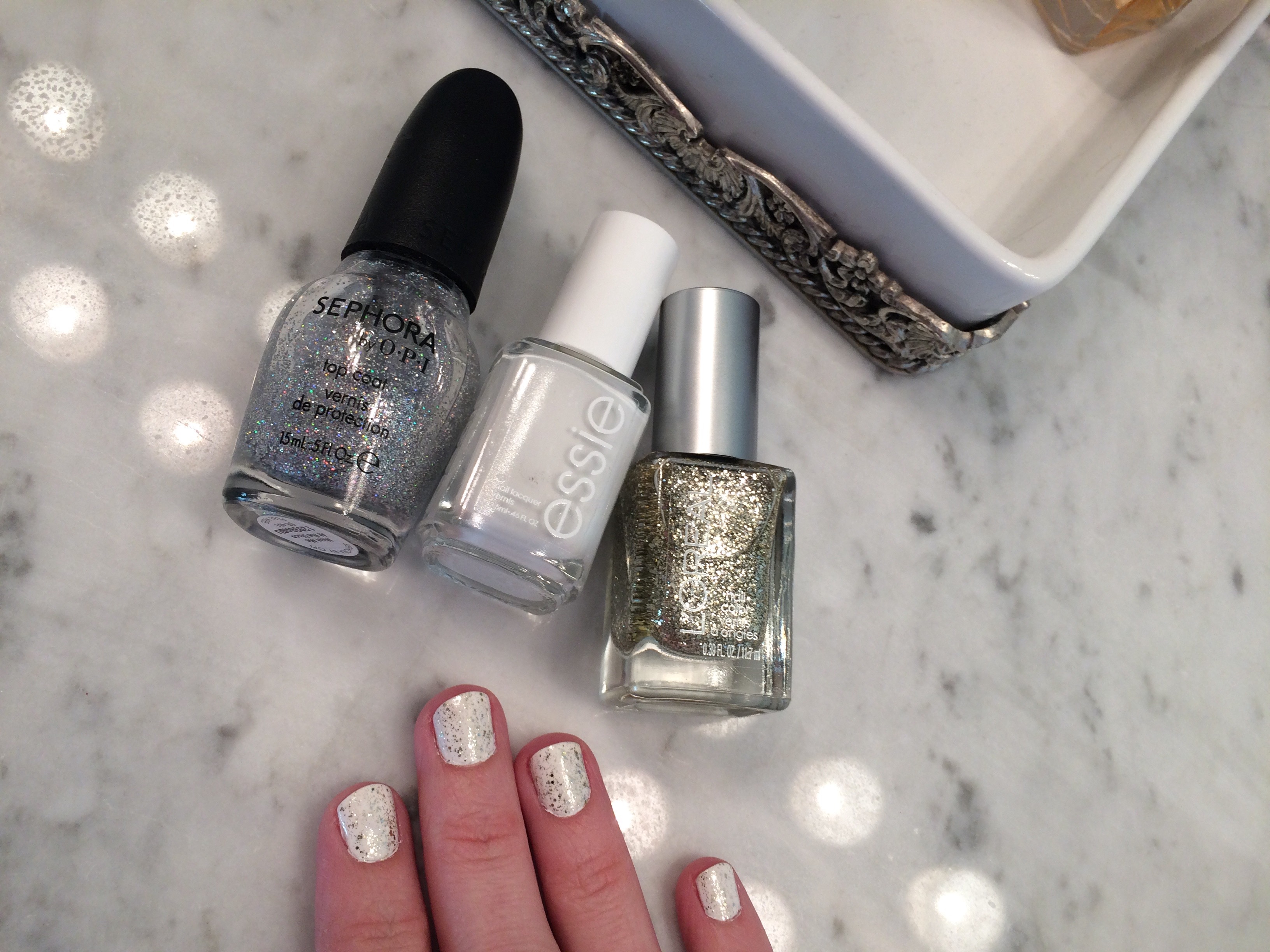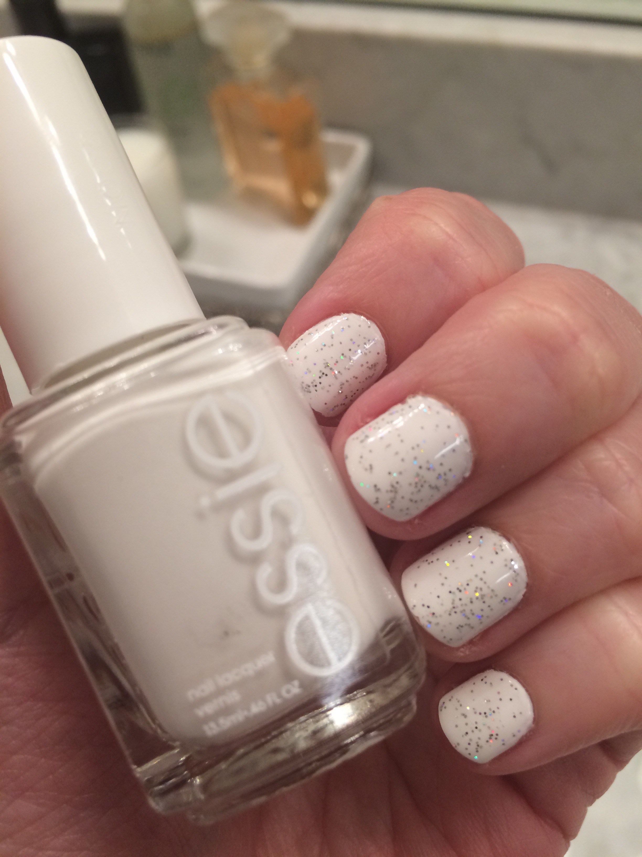 I know white nail polish is usually a summer thing, but I have been wearing it nonstop! I love to pair my white nail polish with a sparkly topcoat.